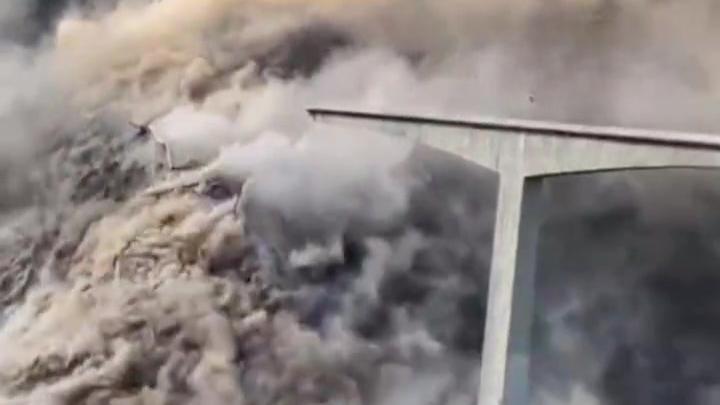 四川阿坝红旗特大桥发生垮塌,据介绍:山体滑坡致边坡裂缝,已提前一天交通管制,无人员伤亡。11月11日,四川省阿坝州马尔康市双江口水电站红旗特大桥发生垮塌。据视频显示,该桥桥体坠入下方的足木足河中,腾起巨大烟尘。 相关部门透漏,确有其事,伤亡情况不明。11月10日,当地对该大桥进行了交通管制。据平安马尔康公众号路面和边坡出现裂缝,存在安全隐患。为保障过往车辆行人通行安全,11月10日起对国道317线马尔康市双江口红旗桥路段实施临时交通管制,解除管制时间待定。”,裂缝险情可能是因旁边山体发生滑坡导致,相关专家已抵达现场,后续工作正开展中。 阿坝州大桥垮塌 公路大垮塌 阿坝州