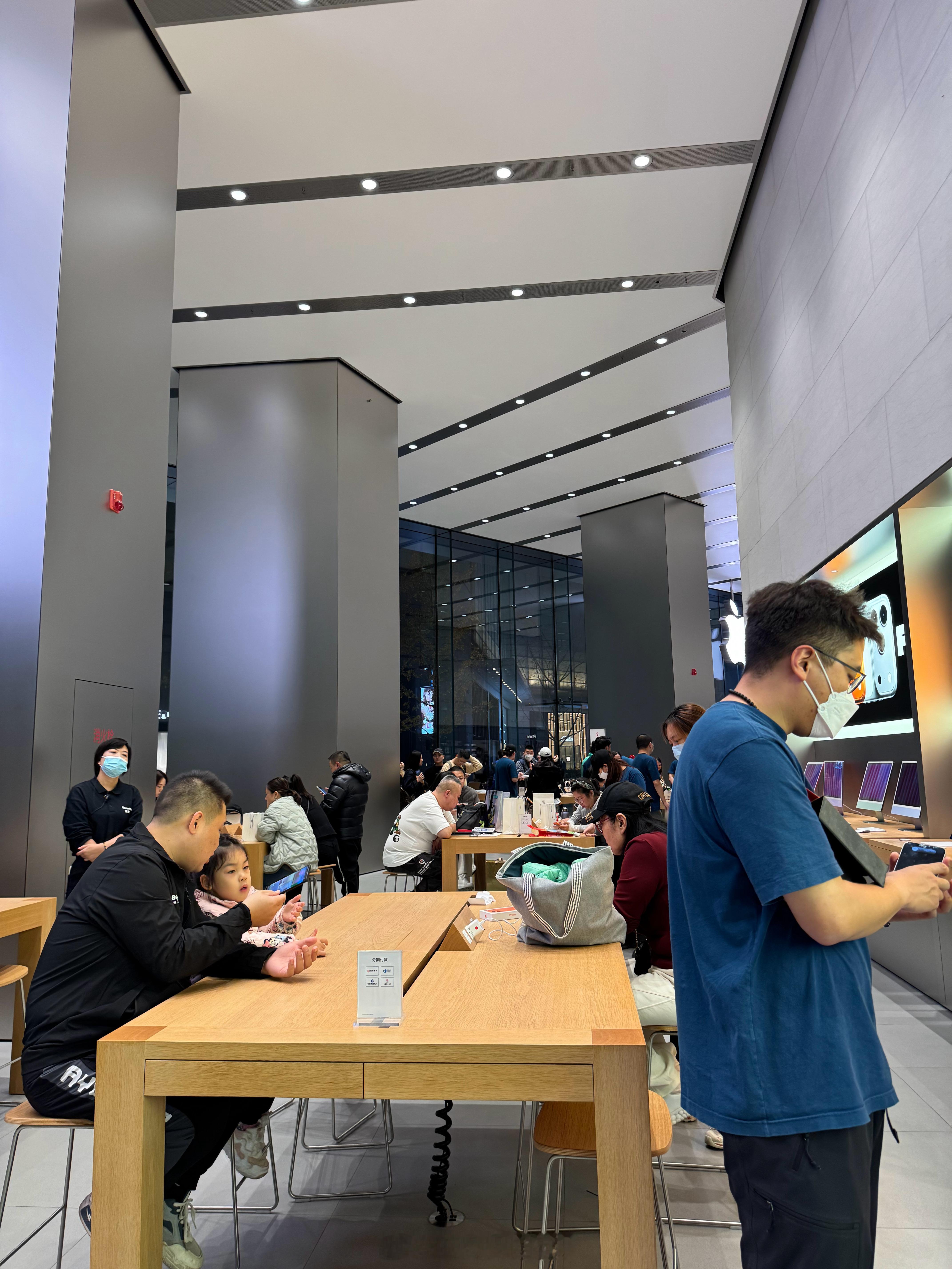 到苹果店修我的老imac和macbookpro赶上iphone17到货了,都在排