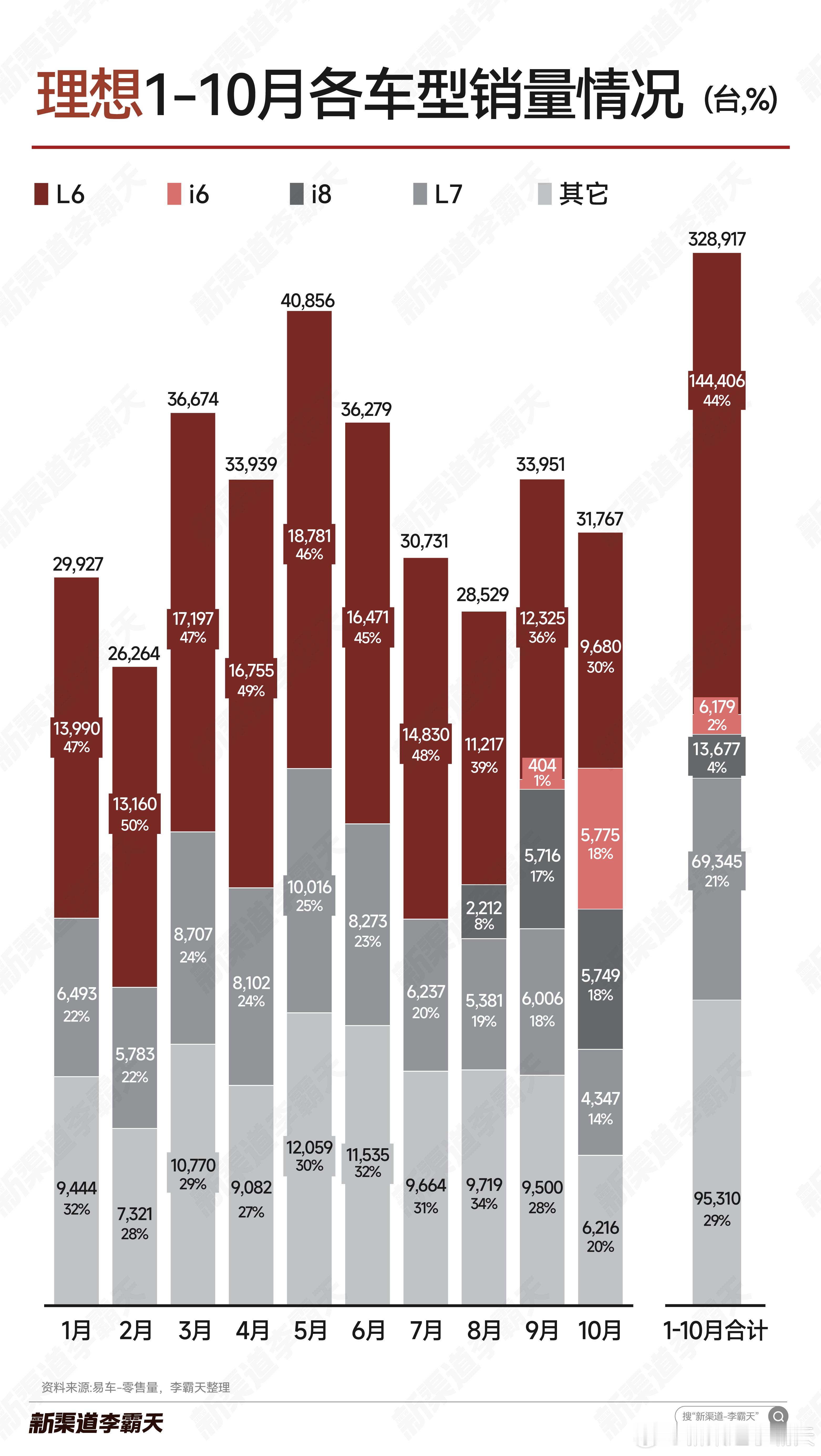 【理想汽车1-10月各车型销量】两大核心纯电车型i8与i6卖得都还不错。