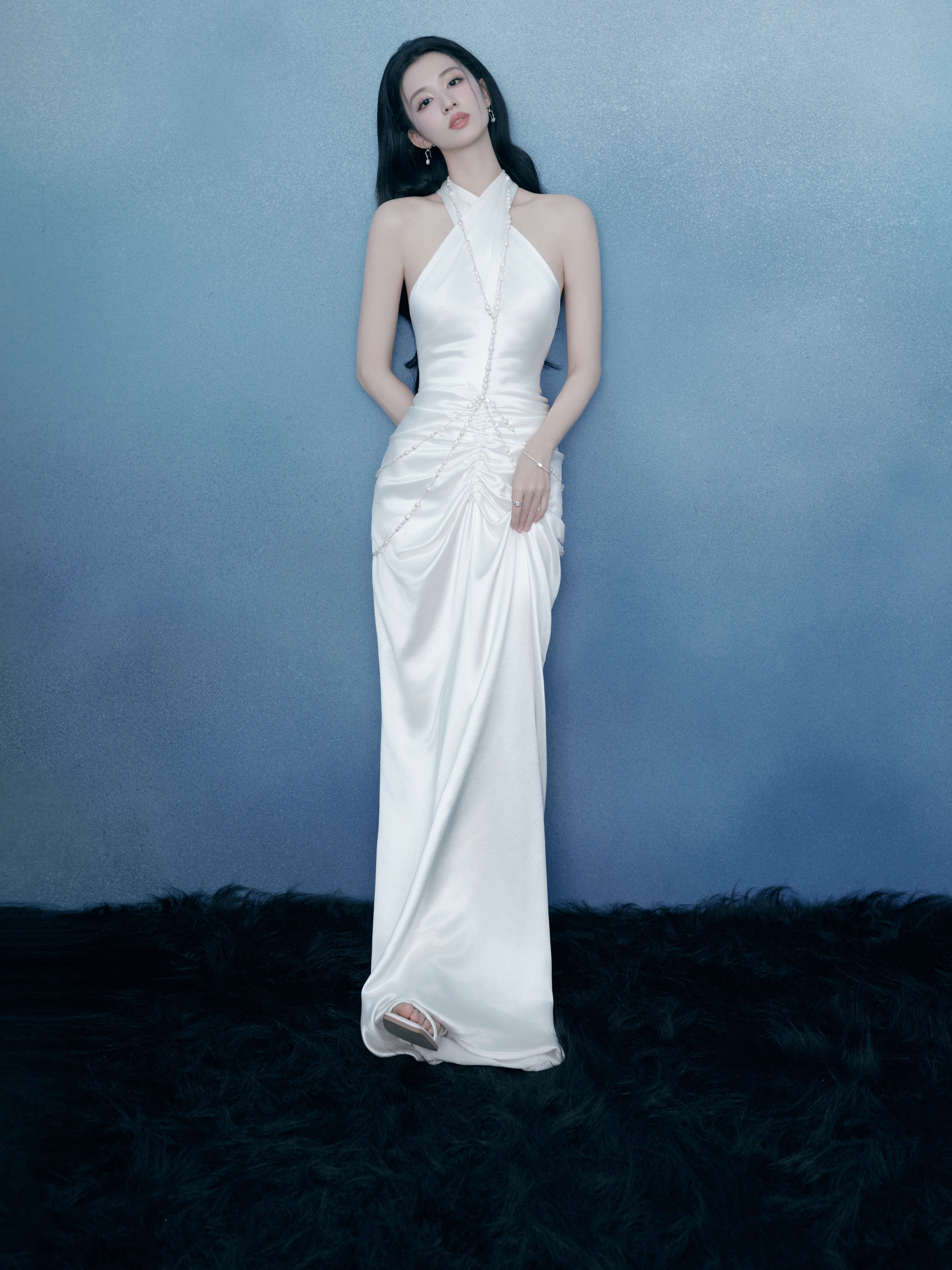 刘亦菲把死亡玫粉穿出了定制款的感觉,这种颜色普通人穿上分分钟黑三度,她居然能穿出