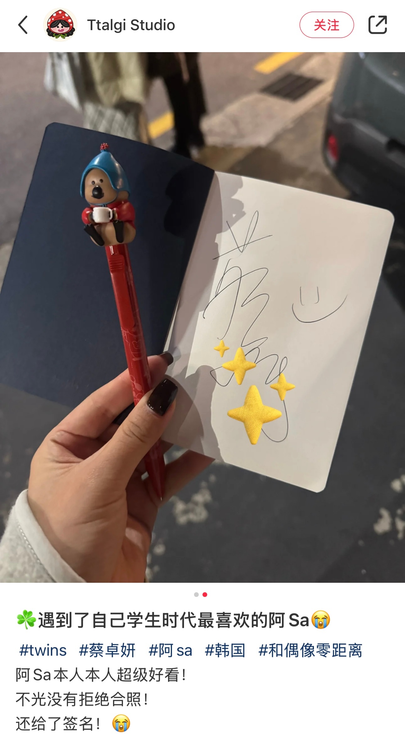 日前有网友在韩国偶遇到阿Sa