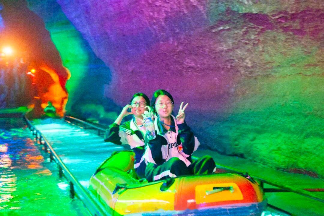 说起上课,你脑海中浮现的是什么画面?是教室里整齐的课桌椅,还是老师站在黑板前滔滔不绝的讲解?在山东临沂的沂水县,有一个特别不一样的课堂——萤火虫水洞·地下大峡谷。这个秋天,3000多名来自青岛、滨州、济南等地的孩子们,在这里上了一堂让他们终身难忘的"地下课"。会发光的生物课:当你走进一个黑漆漆的溶洞,突然发现头顶上闪烁着点点星光。这不是什么特效,而是成千上万只萤火虫在发光。孩子们仰着头,看着这些会飞的小星星,眼睛都舍不得眨一下。"它们像不像会飞的星星?"一个小女孩轻声问同伴。这样的生物课,可比课本上的图片生动多。会"生长"的地理课:在这个形成于6500万年前的溶洞里,孩子们用手指轻轻触摸着湿润的岩壁。"天呐,这块石头竟然比恐龙还老!"一个中学生惊讶地喊道。导游告诉他们,这里的钟乳石每百年才长一厘米。这不就是最直观的地质演变课吗?难怪随行老师感叹:"在教室学地质演变,在这里是亲身穿越地质年代。"会"唱歌"的物理课:要说最受欢迎的,还得数那条获得上海大世界基尼斯认会"唱歌"的物理课:要说最受欢迎的,还得数那条获得上海大世界基尼斯认证的"最长溶洞漂流"。孩子们坐着皮筏,在黑暗中顺着地下河漂流,耳边是哗哗的水声和溶洞的回声。"这比做物理题有趣多了!"一个男生兴奋地喊道,"这一下冲出去的推背感,太真实了!"在这里,水流的力量、声音的传播,都变成了可以亲身体验的物理实验。会"伪装"的美术课:走出溶洞,孩子们又来到了蝴蝶谷。50多种色彩斑斓的蝴蝶在身边翩翩起舞,有的甚至停在了孩子们的指尖上。"枯叶蝶真的太会伪装了!我刚才还以为那是片枯叶!"一个观察仔细的学生兴奋地跟同学分享他的发现。这不就是最生动的自然艺术课吗?为什么孩子们这么喜欢临沂的沂水县?"因为在这里,知识不再是需要背诵的负担,而是可以用来触摸和感受的乐趣。"一位教育工作者说出了真相。另一位带队老师补充道:"你很难在传统课堂上看到所有学生都如此专注。但在这里,每个孩子眼睛都在发光——好奇的光芒。"来自青岛的初中生小王说得更直接:"如果学校课堂也这么好玩,我肯定天天盼着上学!"是啊,在这个被智能手机和短视频包围的时代,我们可能低估了真实世界对年轻人的吸引力。当教育从"你要学"变成"我想学",当课堂从四壁围墙扩展到整个自然世界,学习就成了一场永不结束的冒险。萤火虫水洞·地下大峡谷用最特别的方式告诉我们,学习可以很有趣,课堂可以很精彩。这样的教育方式,不仅让孩子们收获了知识,更让他们爱上了学习本身。这大概就是最成功的教育了吧。。