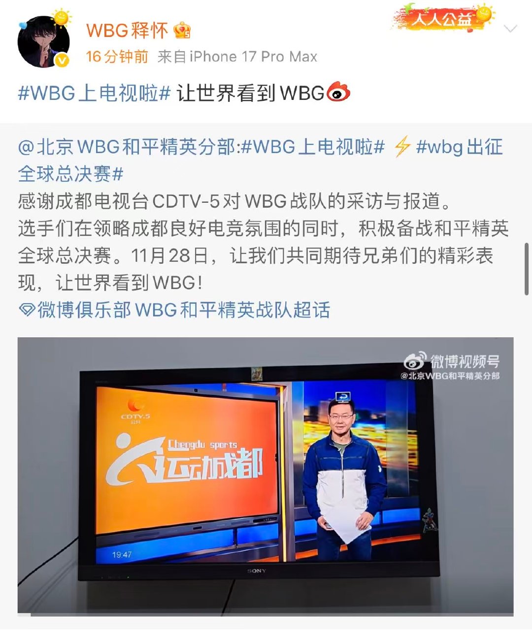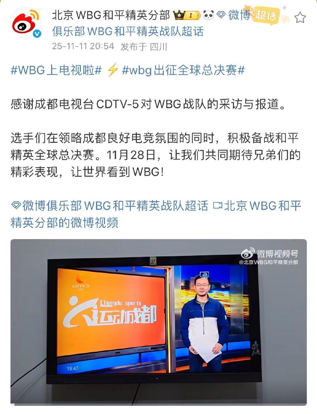 成都电视关注PMGC全球总决赛,而且还采访了WBG的队员们上次看到电视台采访pe