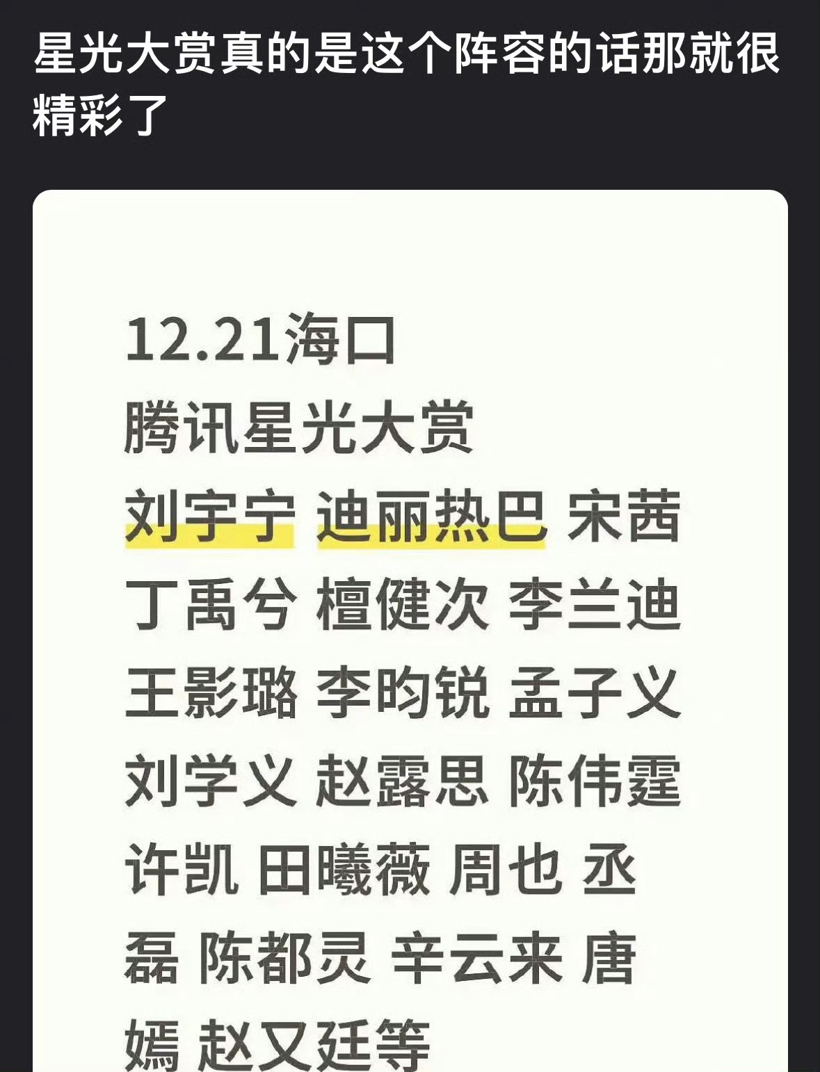 星光大赏网传名单来了,基本都是🐧有剧的艺人,不过看这样子,又是要凑cp的感觉。