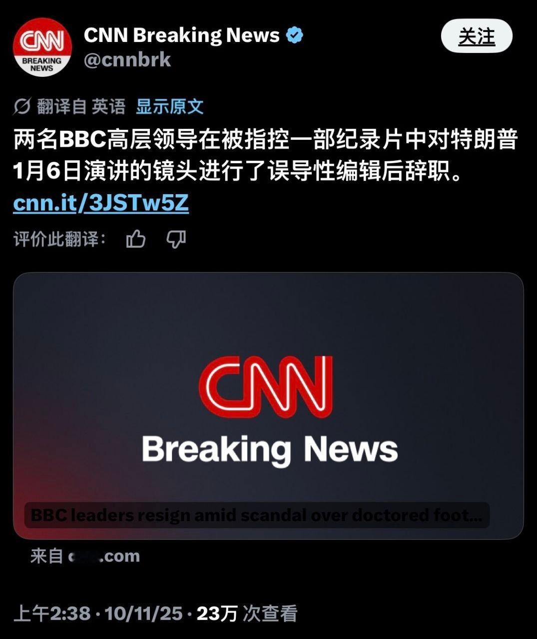 所谓的假新闻阴谋论被证实为事实!明明是“恶意造假”,说成是“判断错误”,呵呵。。。这就是假新闻媒体,不知道还有多少看不明白的?BBC的名声烂了这才是最重要的。以后除了脑残傻逼,谁还信这些所谓的主流权威媒体的报道?包括BBC,这些左媒在川普问题上,在对待保守派(它们所谓的极右)的报道语调上以及在加沙问题上,它们在正常人心目中早就失去公信力了,也就死不开窍的极左白痴和川黑们才视这些左媒为权威新闻来源