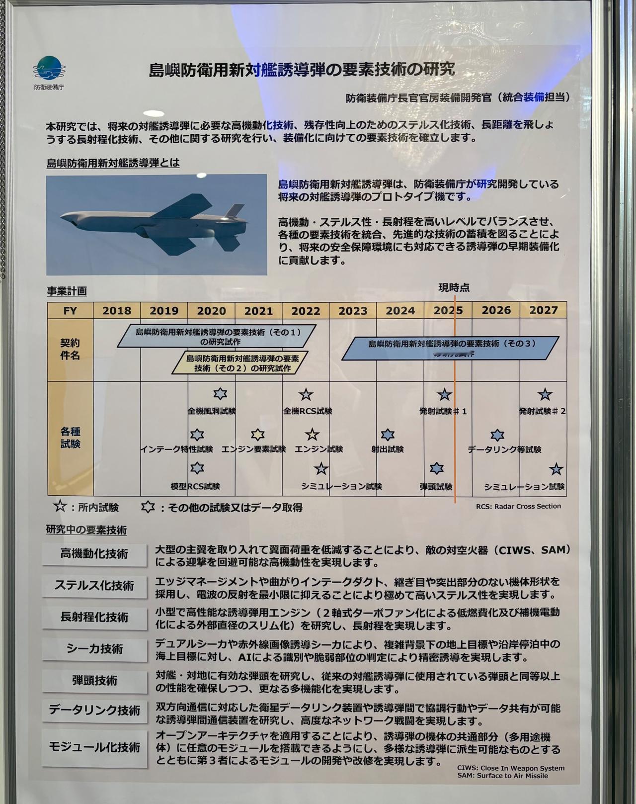 日本島屿防卫用新型对舰导弹,宣传片中的假想敌是054B护卫舰:每天认识一件兵器烽火问鼎计划 ・上个月在新岛发射了3发。还做了横滚。 ・虽说对垂直发射系统(VLS)来说是勉强,但能装入。 ・从台车的记载看,重量约为540kg?(也有人评论说大约5–600kg) ・该导弹能否列装还没有着落,但相关成果会用于很多项目。总体上由主承包方“川崎重工”(KHI)负责开发和试验,但弹头是去德国的TDW(MBDA的子公司、做导弹弹头的公司)试验的。好像对方在碎片相关(破片)方面的知识更丰富。虽然突兀的进气道不像LRASM或战术战斧导弹那么隐蔽,但据说这方面的低可探测性也有设计。 另外主翼是三折式的,比较少见;据说是因为KHI希望更大的主翼,所以设计成这样。发动机是常见的XKJ301-1,基本上是过去也有展示过的KJ300系。 KHI希望把在本项目中得到的小型涡扇发动机推广到其他厂家的导弹等多种用途。最左边的是XKJ301,其他是其放大版的设想,右边的发动机在风扇上作了追加,设想用于类似CCA的无人机搭载。 去年展出的、能抽取大功率的发动机也可能是该谱系中开发出来的。ATLA在同一课题中对发动机的展开构想:左为导弹、中央为小型UAV、右为大型UAV的展开。 翼部示意很容易看懂:连接在弹身部位的黄色翼,然后从那里分割到蓝色的翼并折叠到机体下部。红色的是从尾翼正后方的视角。这样看下来截面是有顾及隐身性的。 若以发射试验时的形态比12式对舰导弹的话,显得比较小巧。 试验是在上个月下旬进行的。XKJ301的卖点之一是能在不拘泥进气位置或规格的情况下发挥性能,因此也在强调向其他导弹的转移。 KHI作为厂商可能会把该导弹的后半部分作为一个模块,而关于前半部的弹头或导引头等,则可以与其他厂家的部件组合使用。 另外,关于随涡扇化带来的射程延伸,涉及很多要素,不能一概而论,但大致可以认为是1.5倍左右,或把12式能力提升型从900km最终目标推到1500km来看,大概就是这个范围。 日本政府希望增加拥有远程对舰导弹技术的厂商数量,从一家增加到两家。 另外,因为三菱没有小型涡扇发动机的技术,所以KHI对此抱有期待感。 另外在项目说明里已经展示过,但这里的特点性机型预想采用雷达/光学的双模导引头。 ATLA方面也想借此机会获得关于“到底双模寻的器能在多大程度上提高导弹任务成功率?”信息。 据说单独一发做出高机动并回避(躲避)时意义不大——要达到有意义的效果,设想是导弹间的协同行动或以多发射击为前提。 关于远程导弹的试验,这次是在新岛进行,但要试验超过1000km的射程可能要到南鸟岛或者美国。