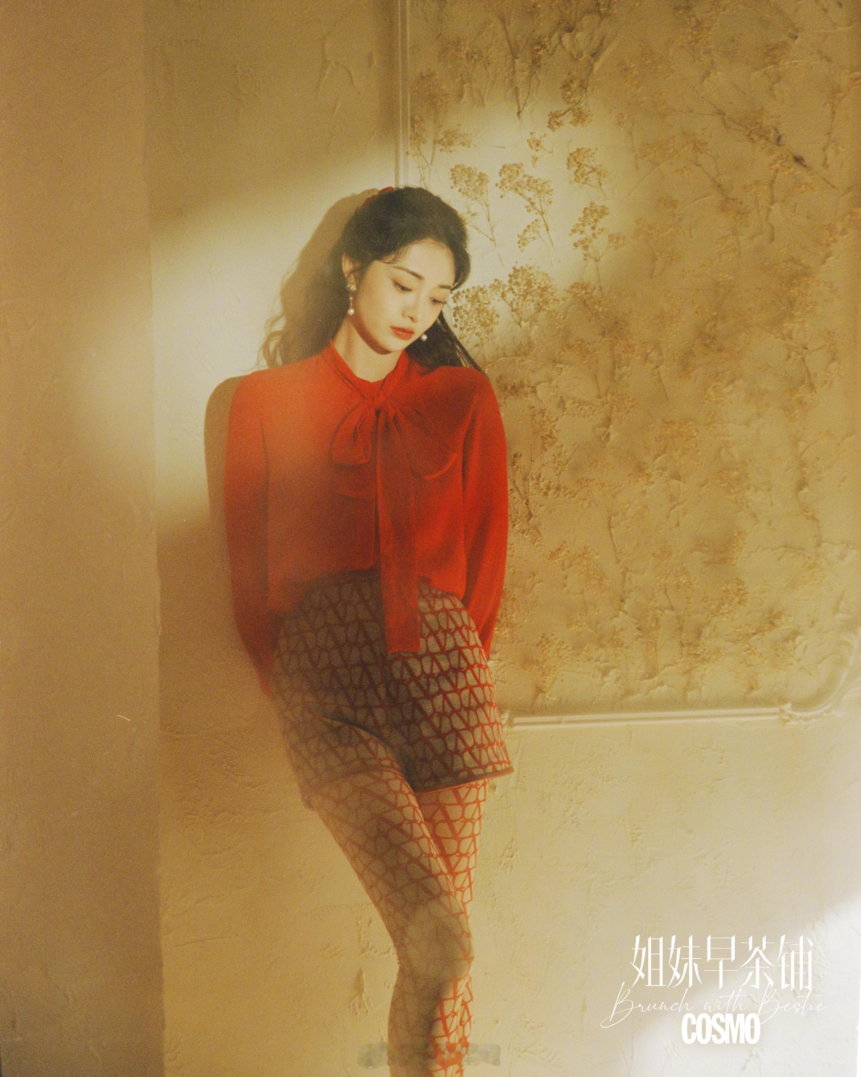 刘亦菲把死亡玫粉穿出了定制款的感觉,这种颜色普通人穿上分分钟黑三度,她居然能穿出