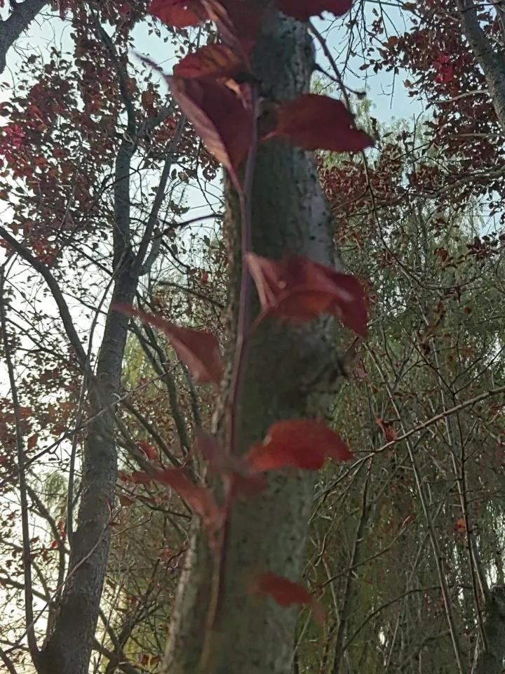 有人说这是紫叶李,还有人说是红叶李,压根连这个名字我都没有听说过,据说是城市常见的观赏乔木,核心特征与背景信息如下: 1. 识别特征: -叶片常年呈紫红色(秋季颜色更深),枝条纤细且分枝密集; 树皮多为灰褐色,枝条形态与图中稀疏纤细的枝干高度吻合。 2. 习性与用途: 适应性强,耐修剪,常作为城市行道树、公园景观树种植; 春季会开白色小花,秋季叶片变色后观赏性较高。 你们觉得这是什么树呢?