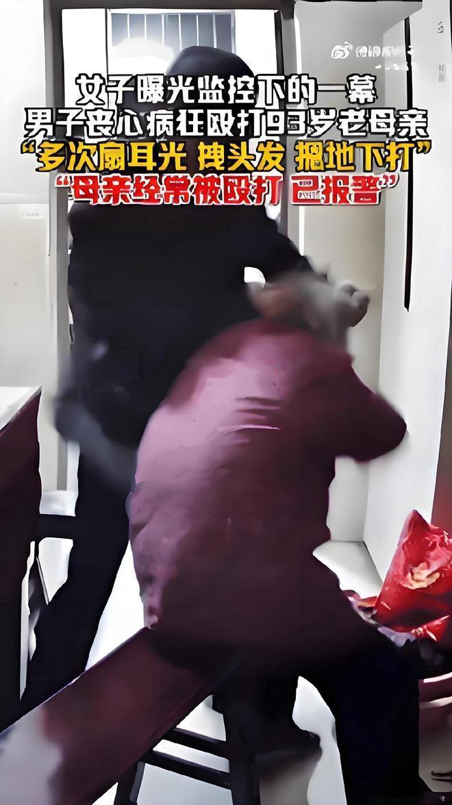 11月10日,一段“儿子殴打93岁母亲”的视频在网上流传。视频显示,一名男子先是对着一名白发老太太厉声质问,然后连续扇耳光,老人发出大声哀号。该男子还多次拽老人头发、将其摁倒在地殴打,老人哭喊不止。 据了解,施暴者系老人亲生儿子杨某中,女儿称母亲长期遭其殴打,已报警处理。江苏常州嘉泽派出所于11月10日18时16分接到警情并迅速到场,杨某中已被警方抓获。 江苏常州武进区嘉泽镇人民政府通报称,杨某中与其母亲陈某琴是因琐事发生口角后,杨某中动手殴打了母亲。此外,海报新闻记者采访江苏省妇联时,工作人员表示暂未关注到相关报道,后续将上报这一情况核实事发地是否在江苏,若情况属实将报警处理,而该事件实际警方早已介入。11月11日中国妇女报刊文怒批此现象,并呼吁健全反家暴干预网络、依法严惩。