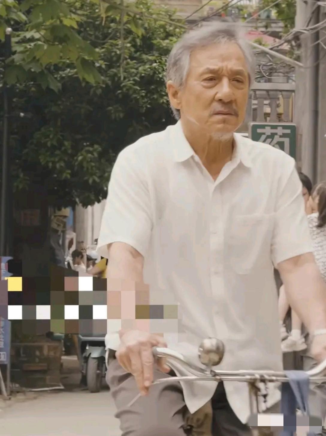 镜头中的成龙满头银发,眼角耷拉,双颊塌陷,皮松肉垮,额纹深刻,颈纹清晰,嘴型缩小,眼袋下垂严重,下巴都快掉下来了,眼神里蓄满沧桑,圆隆的鼻头太抢镜!这虽是最新电影《过家家》剧照,但近年来他断崖式的衰老也没刻意老化,几乎是本色出演哈!