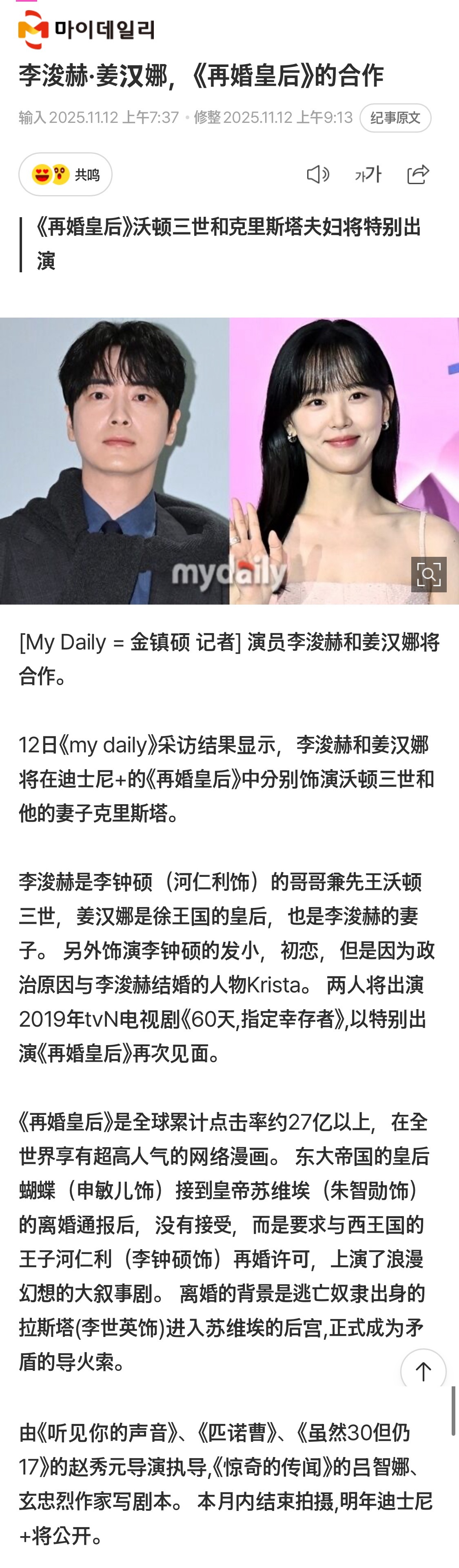【独家】李浚赫特别出演《再婚皇后》~和姜汉娜合作饰演沃顿三世和他的妻子克里斯塔。说真的李浚赫这种大帅哥就应该出演公爵之类的!🫢