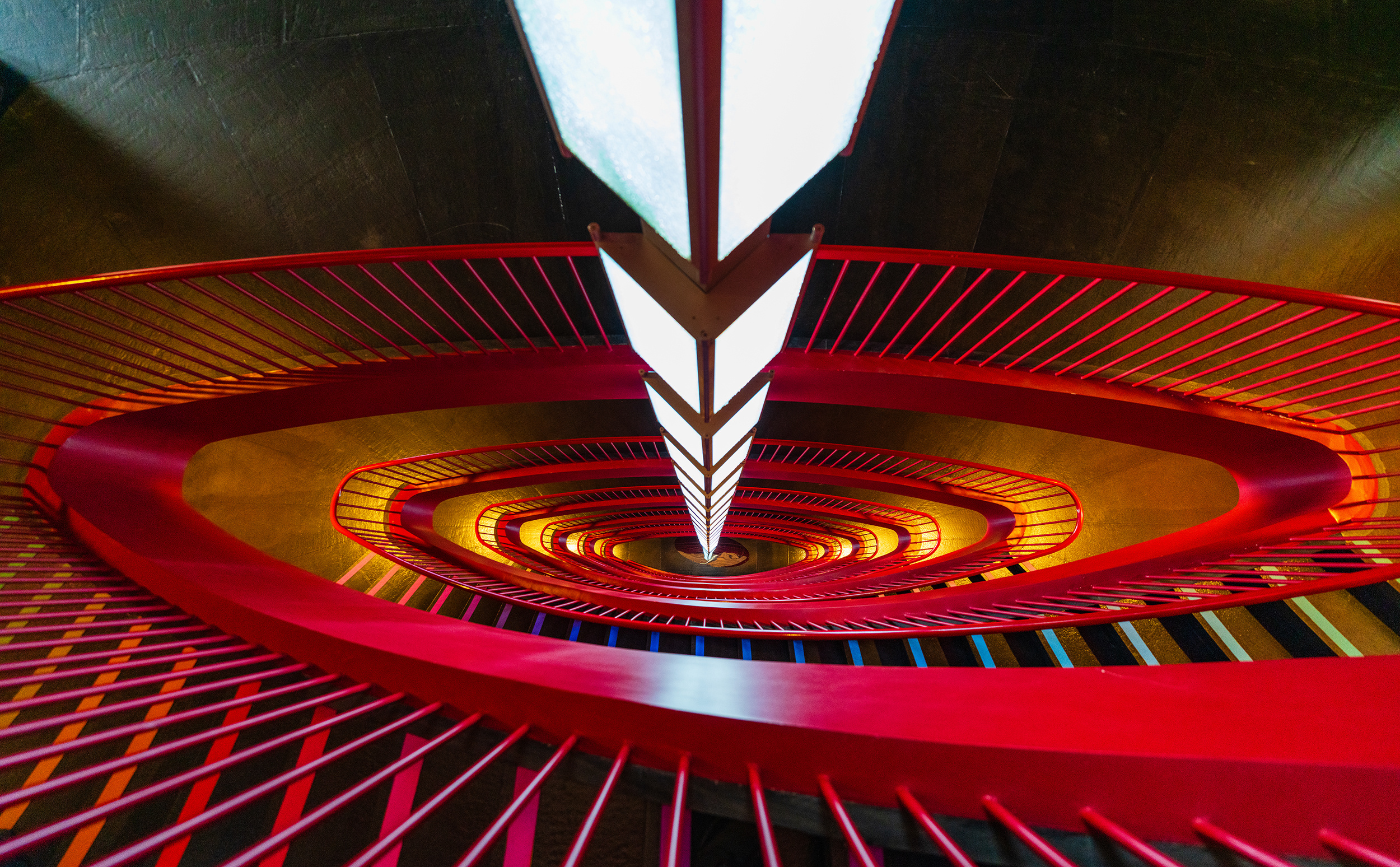 宛如一把插入星系漩涡的利剑!国家大剧院的螺旋梯,红焰般的旋弧层层绞织。上方灯饰骤成利刃,自穹顶破旋而下。是旋梯攀向苍穹,还是利剑划破了宇宙的梦?哈苏X2DII, 20-35镜头,F4,ISO1600,1/40秒。