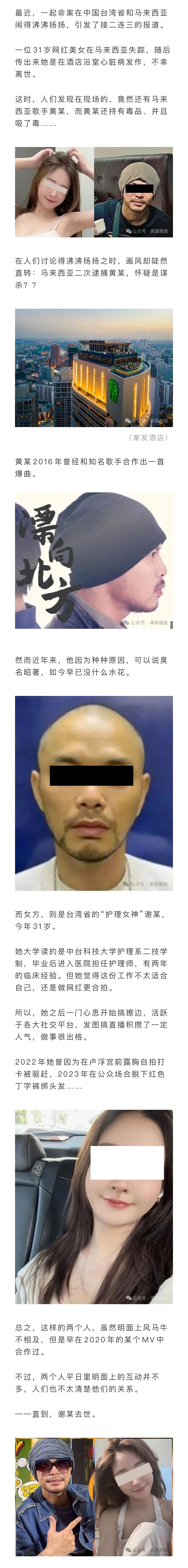 最近,中国台湾地区网红在马来西亚酒店中过世,和她在一个房间的竟然还有一名歌星?在人们沸沸扬扬地讨论了两天之后,大马警方忽然宣布此案将以谋杀案方向侦查,因为他们发现了新的证据?!