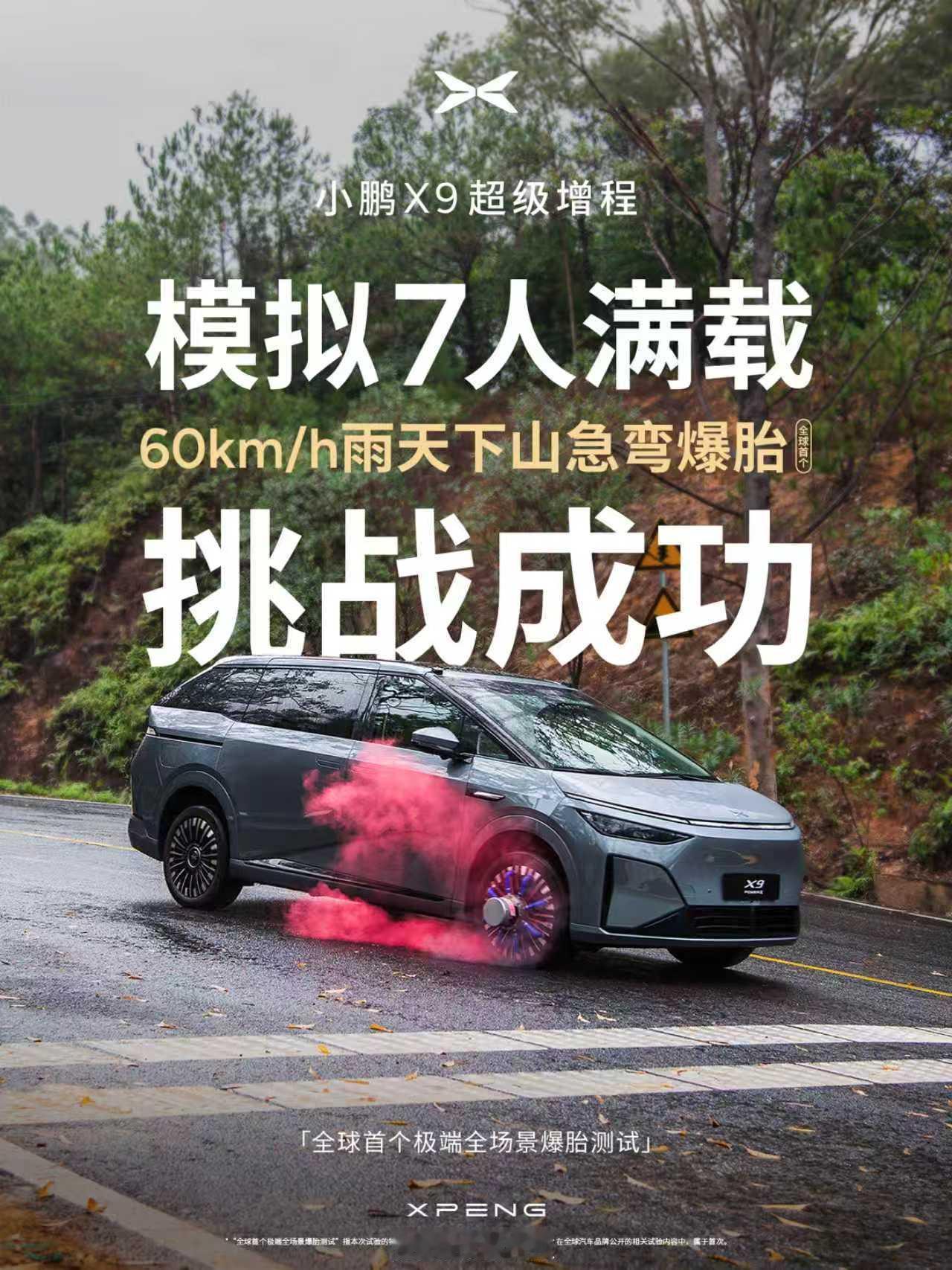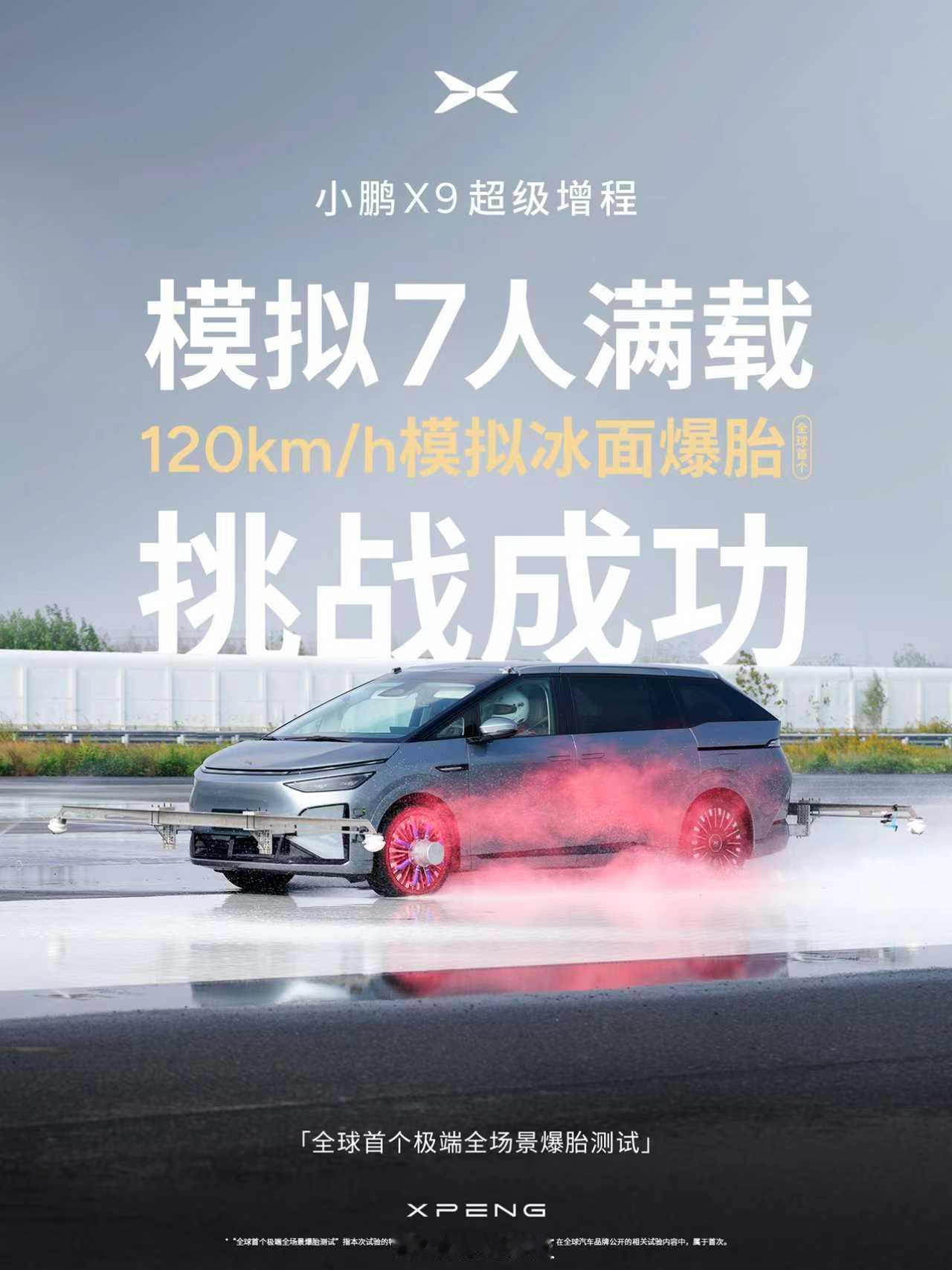 安全才是家用车的核心底气!小鹏X9超级增程的极端全场景爆胎测试太圈粉,7人满载状态下,顶着暴雨在60-160km/h区间连闯积水路、模拟冰面等五大场景,爆胎后依旧稳得住、刹得停,全球标准的安全冗余太让人安心。1602公里续航解决里程焦虑,大7座空间适配家庭需求,既懂长途出行的便利,更守得住极端工况的安全底线,这样的家用车难怪让人放心托付~