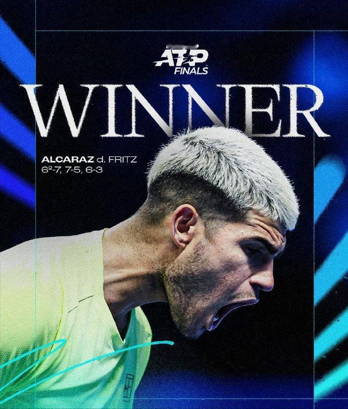 网球:ATP年终总决赛阿尔卡拉斯两连胜 北京时间11月11日,2025ATP年终总决赛小组赛,阿尔卡拉斯6-7(2)/7-5/6-3逆转弗里茨,取得小组赛两连胜,拿到400分,104W美金。 目前鸭鸭距离年终世界第一仅一步之遥,他只要赢下下一场小组赛或成功晋级决赛,就能锁定年终世界第一!