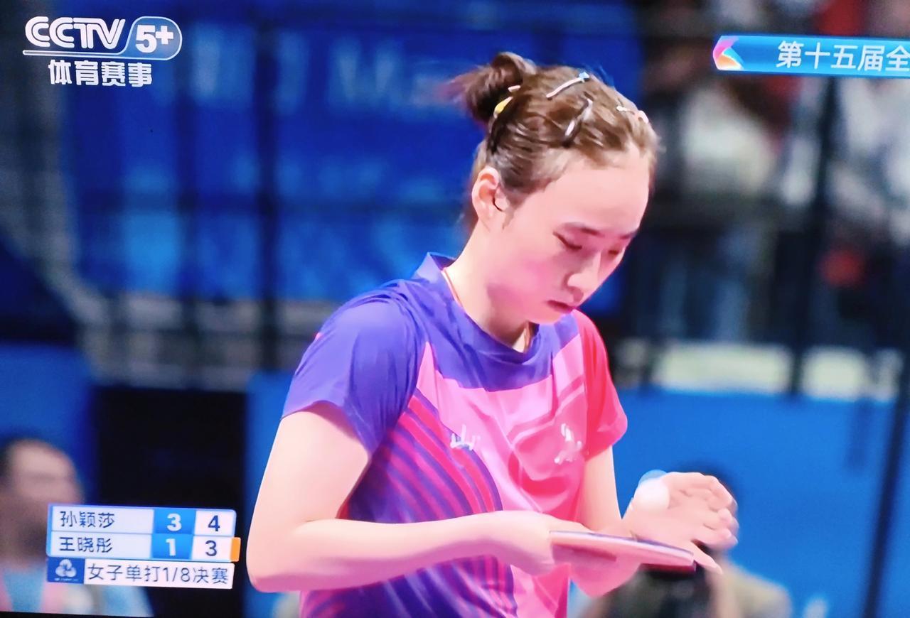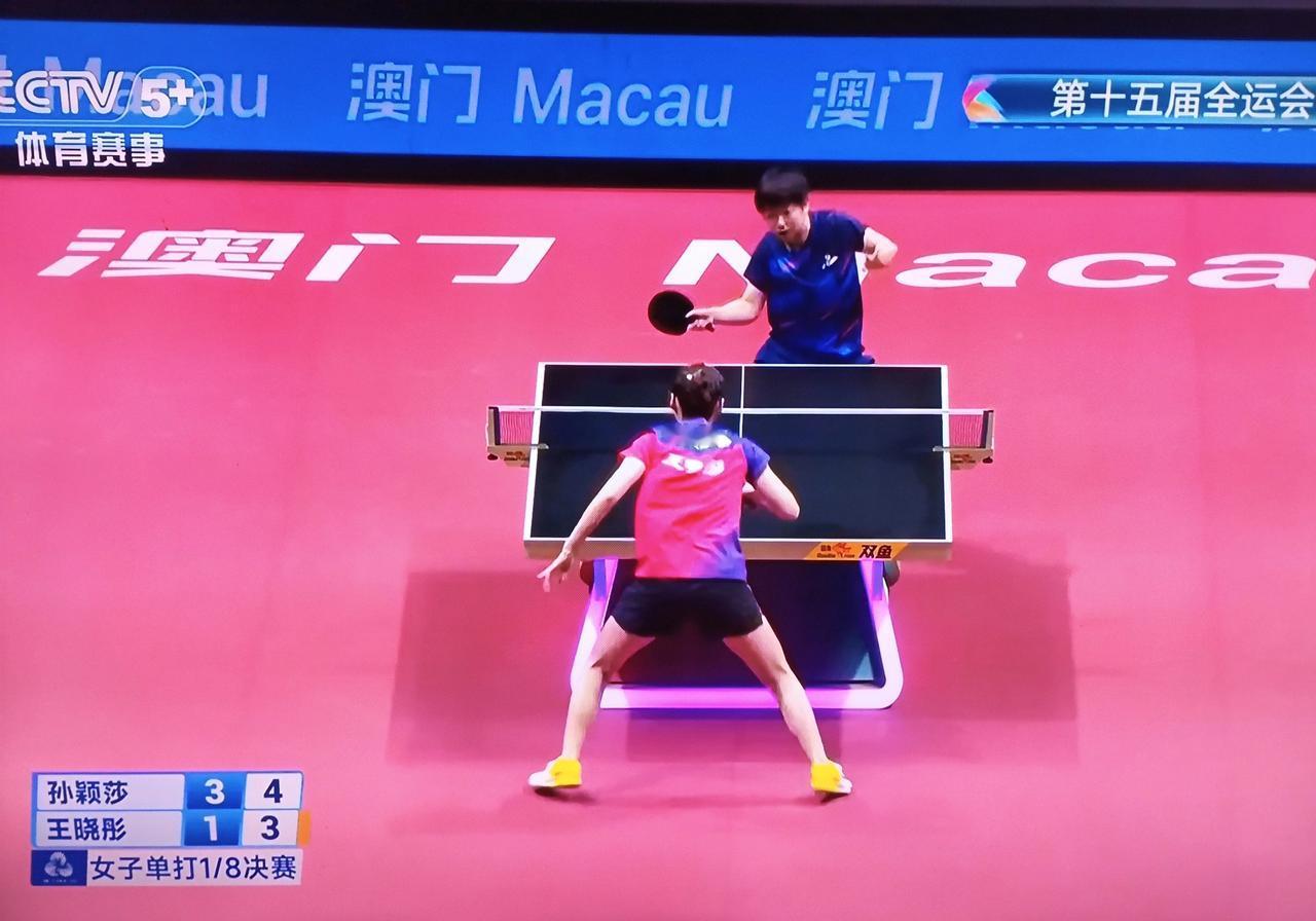 前三局孙颖莎11-4,11-5,11-7领先王晓彤! 第四局孙颖莎8-11被王晓彤扳回了! 这是2025第15届全运会乒乓球女单1/8决赛, 25岁的孙颖莎代表河北队出战,同样25岁的王晓彤世界排名第43位,在国乒女选手中排名第11位,今天她代表山东队出战。 目前第五局孙颖莎6-3领先王晓彤,王晓彤叫了暂停,估计莎莎要大比分4-1拿下了! 莎莎加油[奋斗]!