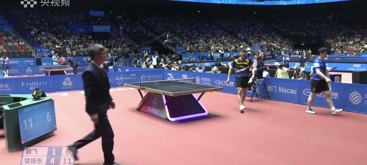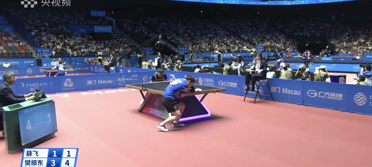 樊振东4:1薛飞丨全运会 第十五届全运会 男单八分之一决赛,卫冕冠军四号种子樊振东以大比分4比1战胜薛飞晋级八强! 本场比赛,樊振东开局相当顺利,以11-4、11-2、11-5连胜三局,大比分领先,第四局双方纠缠至十平以上,薛飞连得两分以12-10追回一局;第五局樊振东一鼓作气以11-6拿下胜利! 恭喜樊振东晋级八强,四分之一决赛将对阵孙正与高杨之间的胜者!