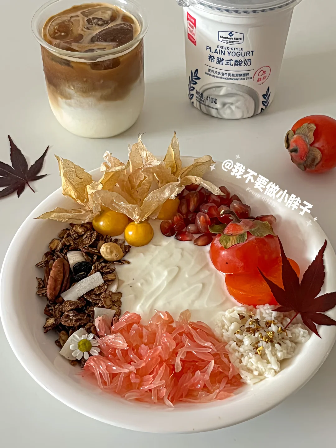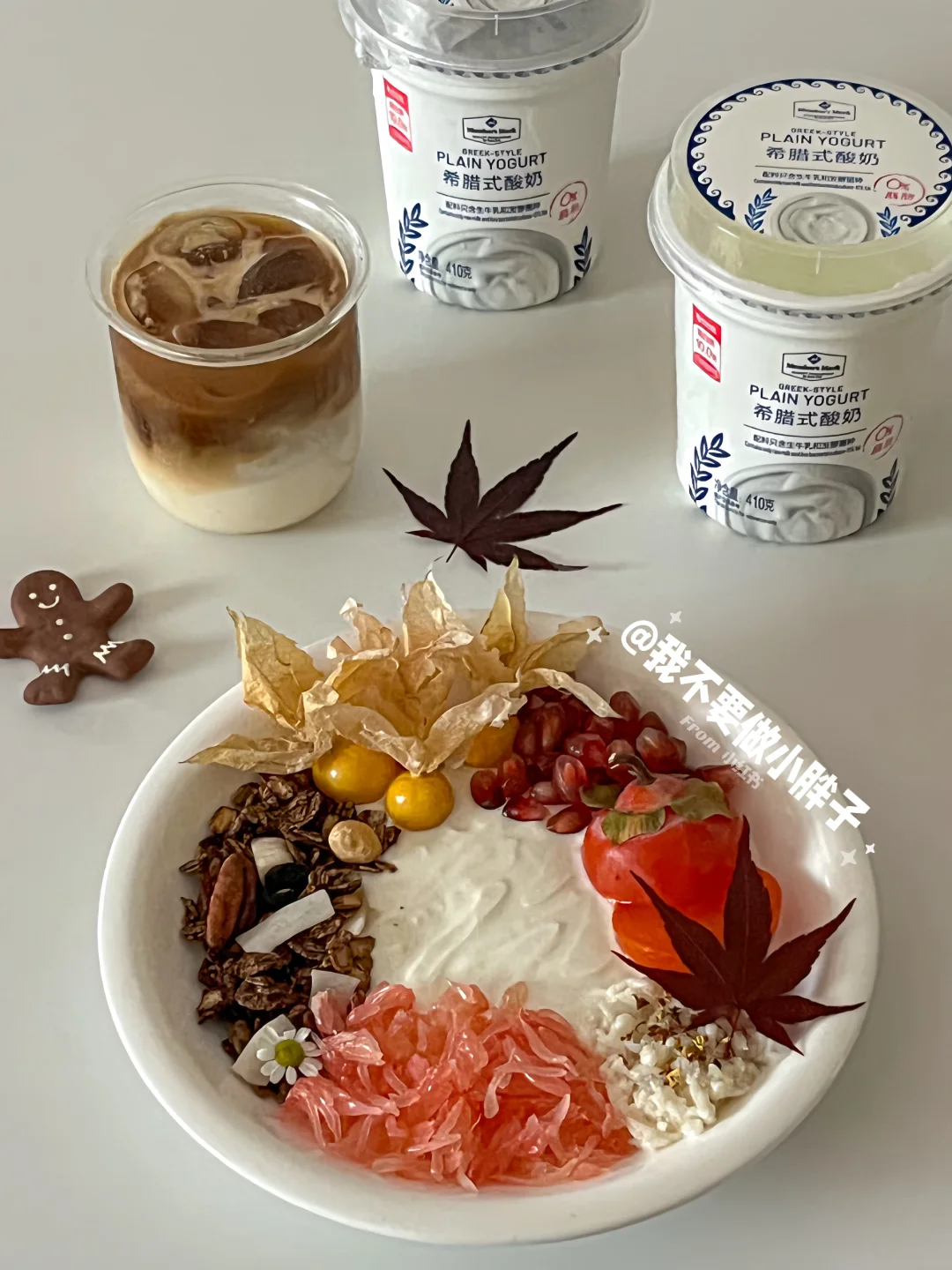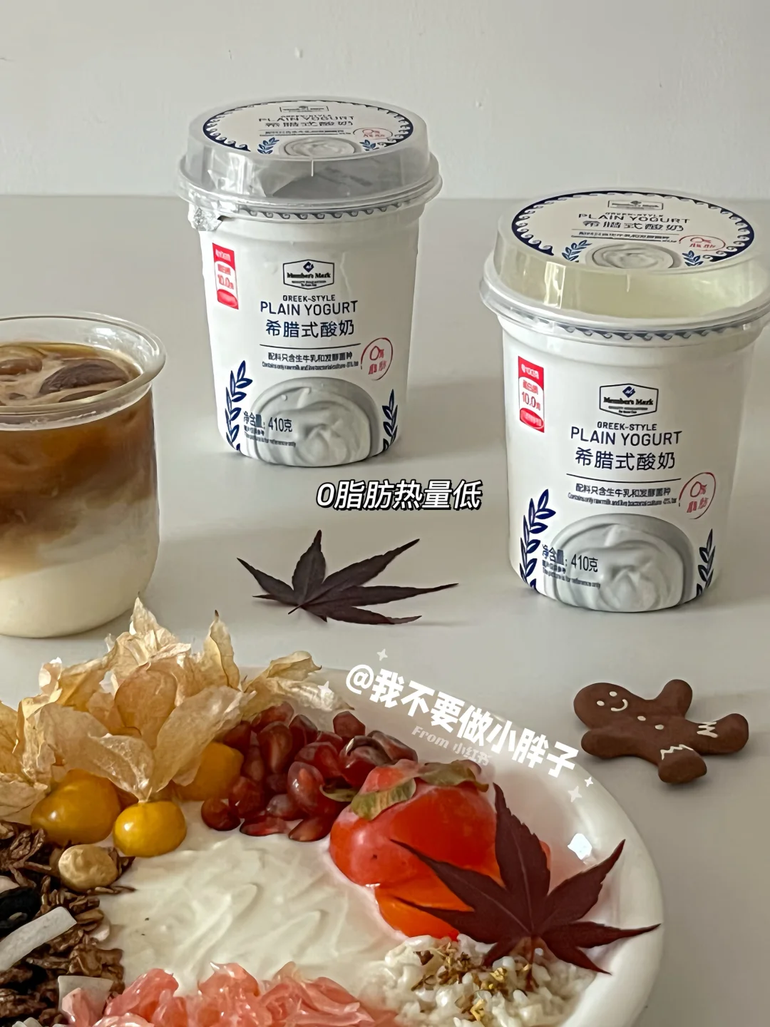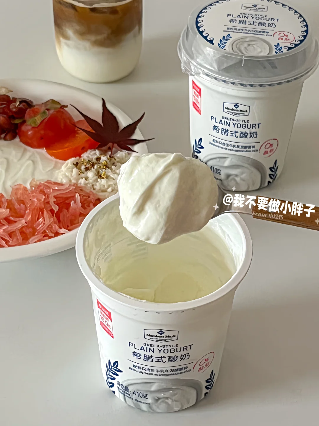 - 📝 我的酸奶碗里有什么: 山姆希腊酸奶|石榴|柚子|姑娘果|燕麦片|柿子|桂花酒酿 - 💭 我的食欲稳定大法,秋冬也能快乐的管理体重。简单又好吃的希腊酸奶碗是最佳的选择!一直回购的山姆希腊酸奶,配料表只有生牛乳和发酵菌种,0脂肪的健康配方是管理期的首选。奶香浓郁,无需过滤希腊酸奶的质地也浓厚丝滑,口感如奶酪般稠密细腻。420g大桶装更适合DIY酸奶碗吃起来更过瘾!管理期的希腊酸奶记得选0脂肪,摄入的热量更低~
