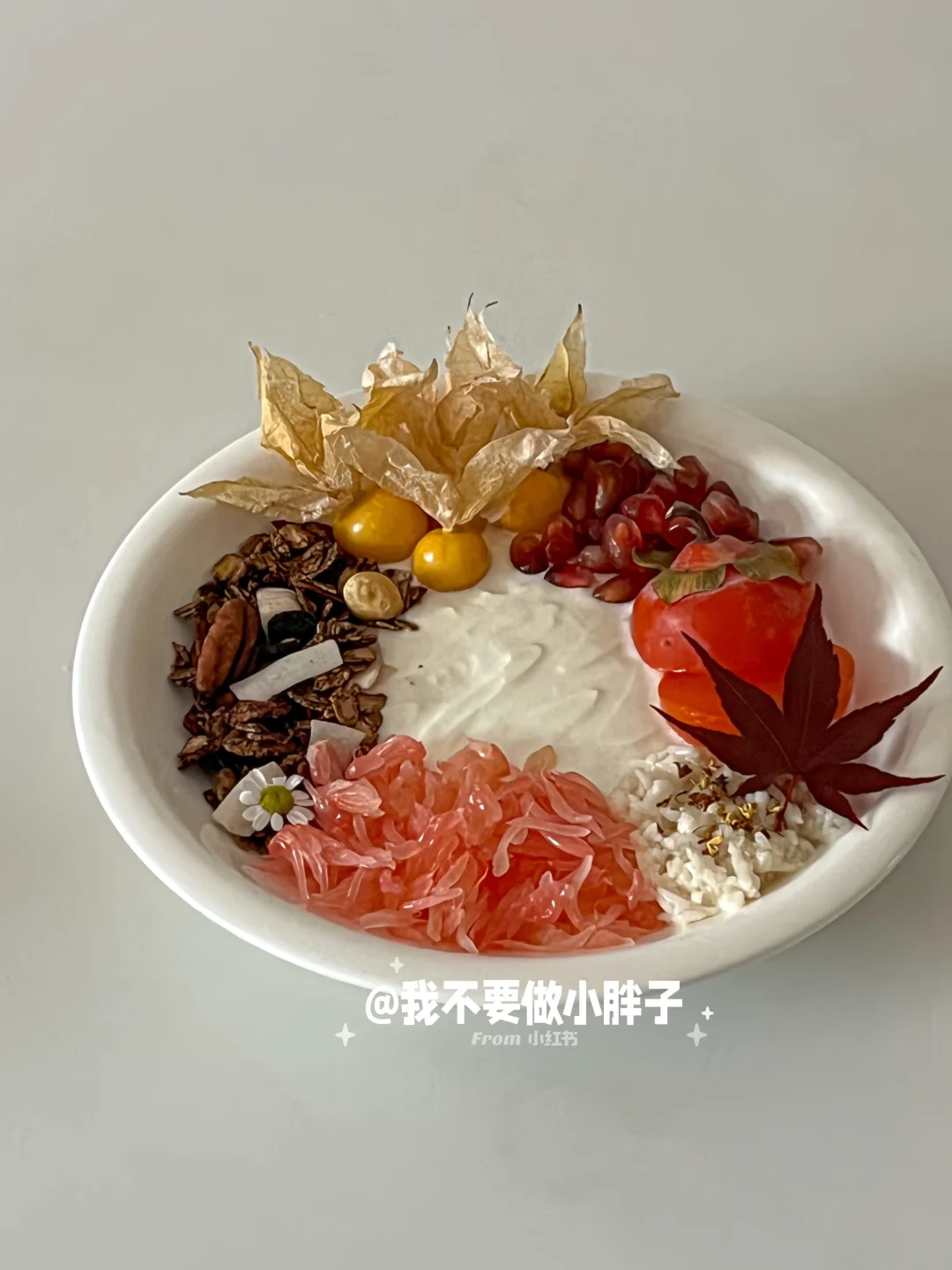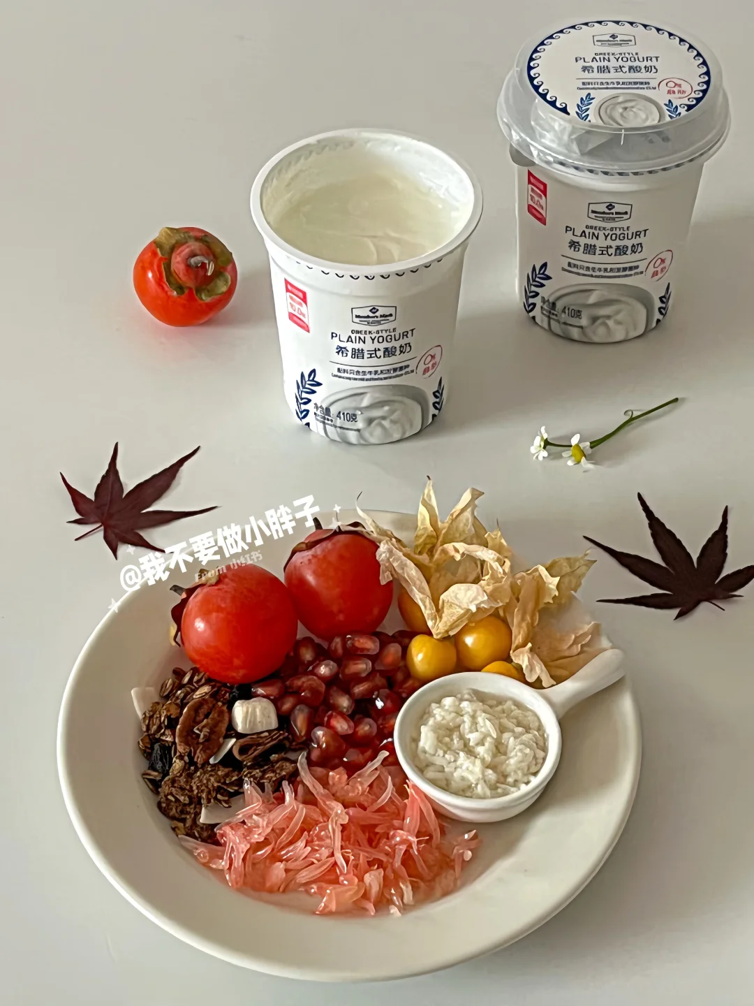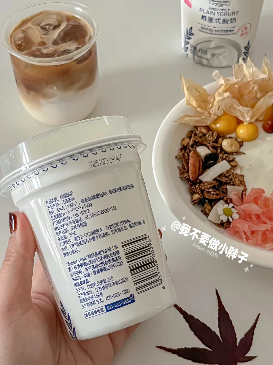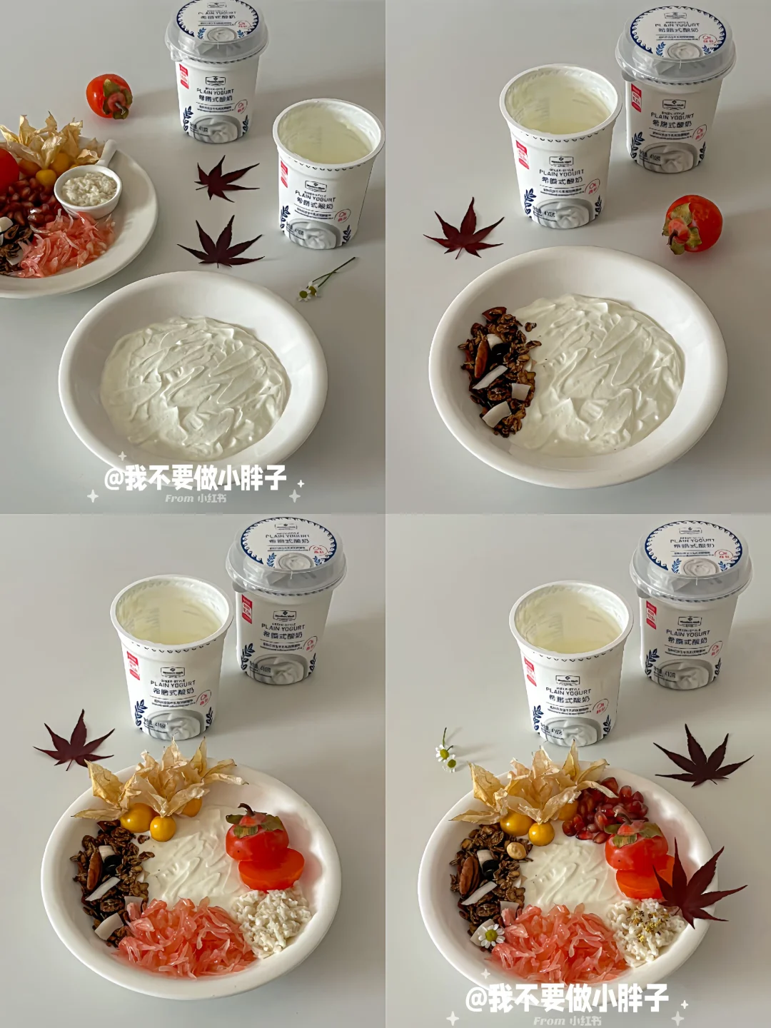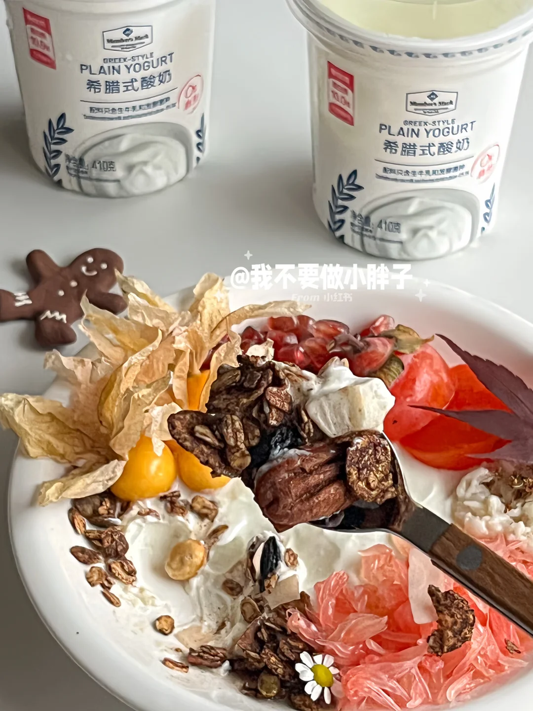 - 📝 我的酸奶碗里有什么: 山姆希腊酸奶|石榴|柚子|姑娘果|燕麦片|柿子|桂花酒酿 - 💭 我的食欲稳定大法,秋冬也能快乐的管理体重。简单又好吃的希腊酸奶碗是最佳的选择!一直回购的山姆希腊酸奶,配料表只有生牛乳和发酵菌种,0脂肪的健康配方是管理期的首选。奶香浓郁,无需过滤希腊酸奶的质地也浓厚丝滑,口感如奶酪般稠密细腻。420g大桶装更适合DIY酸奶碗吃起来更过瘾!管理期的希腊酸奶记得选0脂肪,摄入的热量更低~
