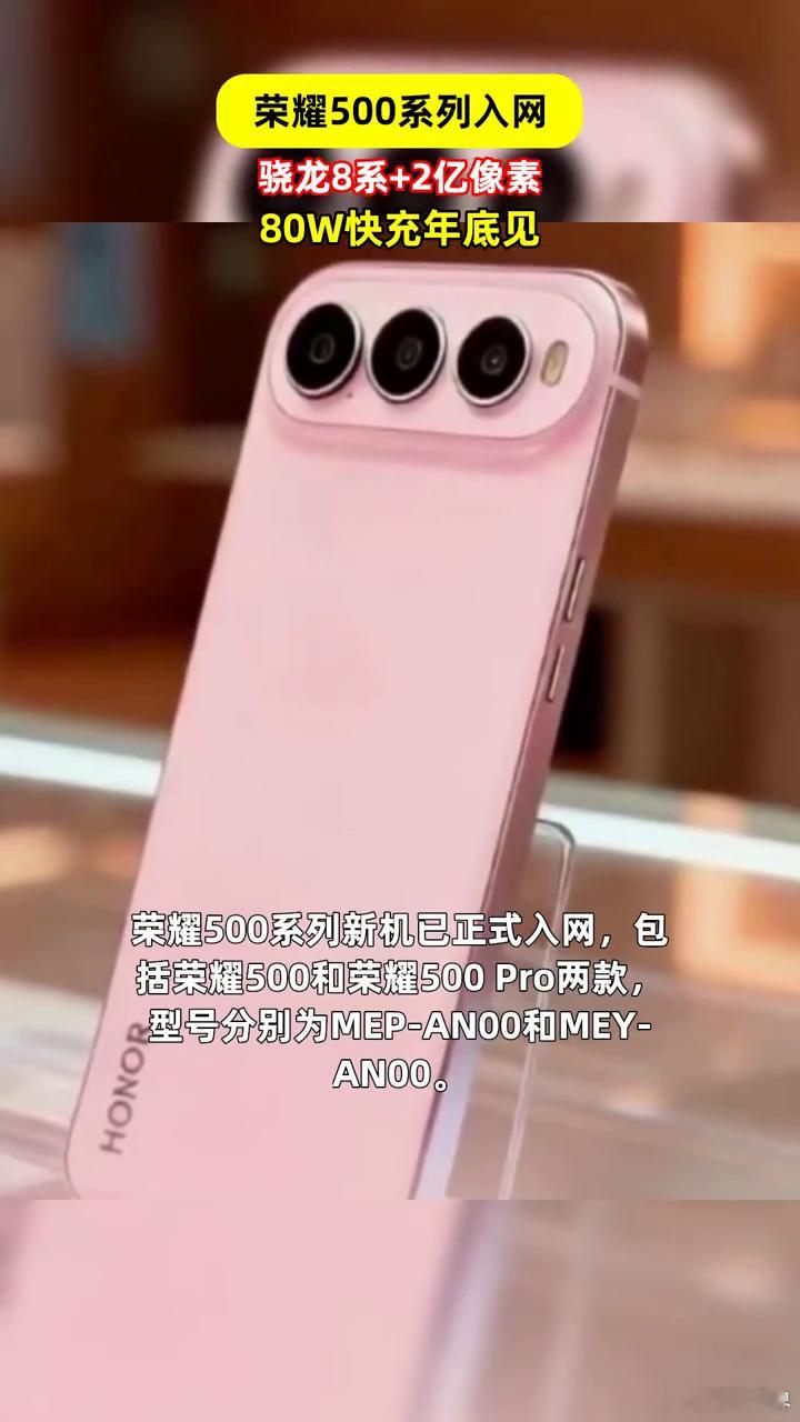 荣耀500系列马上要来了,8000mAh电池配80W快充,加上骁龙8系芯片和2亿像素主摄, 如果维持2499元起售价 那同价位机型压力就大了。