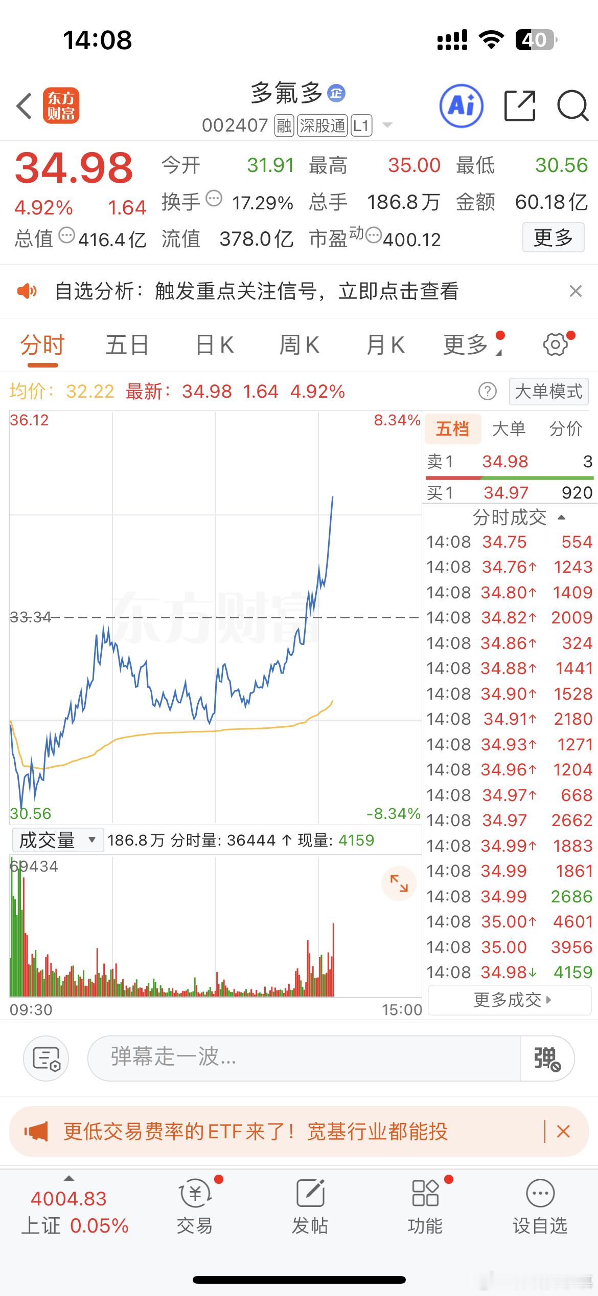 $多氟多 sz002407$ 10分钟之前的我你爱搭不理,现在的我你高攀不起,格局住的同学又赚到了