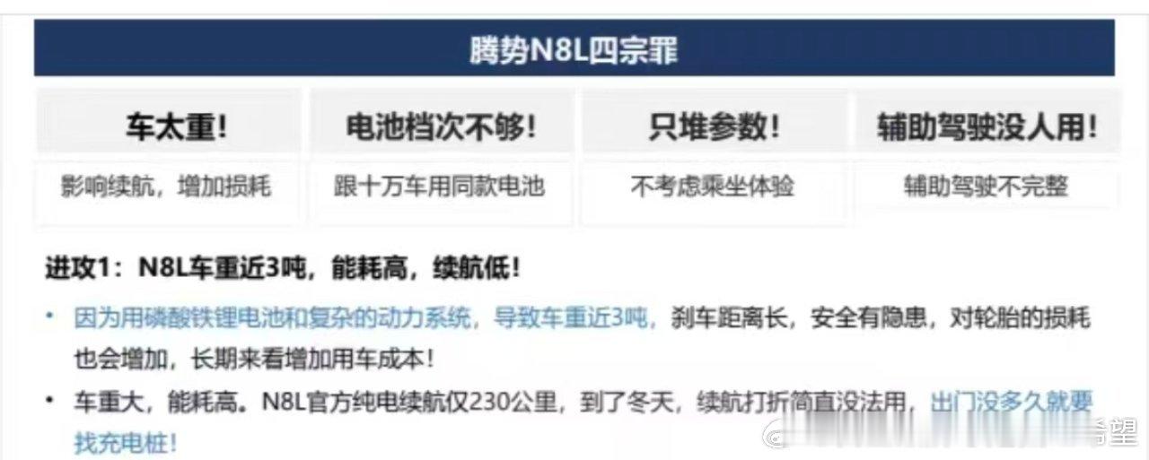 比亚迪天天当圣母,这个不拉那个不踩竞品从不手软N8L新品上市几天,四宗大罪已经定下这至于嘛 ,不说满门抄斩 也是流三千里的水平了这反应出其实竞品对于N8L还是非常重视话术上立刻调整针对 全员上升到同仇敌忾水平这是真的在打仗,真的决生死反观腾势自己,店端的销售人员,遇到来咨询的客人,如果问出了一些网络上看到的疑问,往往缺乏有说服力的回答。当腾势在思考如何才能宣传产品的同时不伤害友商的时候。友商已经把你的产品打成恶贯满盈从上到下充分动员,准备好迎头痛击你了