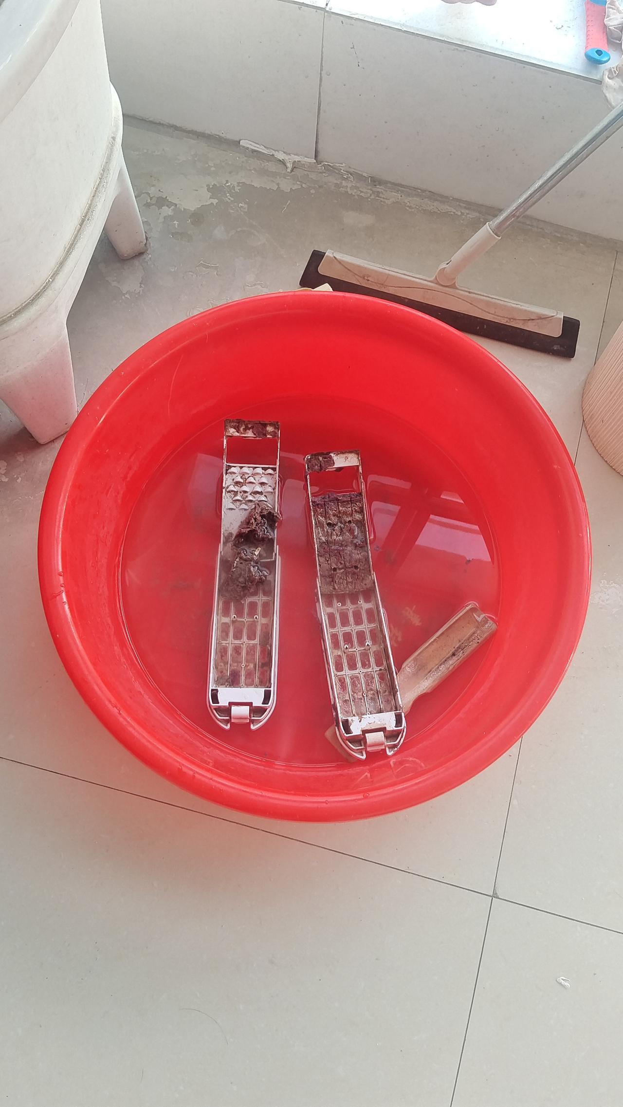 不看不知道,一看吓了我一跳。 刚才洗衣服,洗衣机转着转着,突然停了并发出警报器,我赶紧拔掉电源,寻思是不是报废了? 我钻进洗衣机[偷笑]仔细看了看,原来是这两个东西(不知道叫什么)被脏东西堵住了,我把这两个东西拿下来摁在红色洗脸盆里用刷子把脏东西全刷掉了,然后又将洗衣机桶里这两个有脏东西的位置好好擦了擦,最后将盆子里的这两个东西重新安装好,接通电源,打开按钮,洗衣机又好了。 大家要是遇到这种情况,大概率是这两个东西被脏东西堵住了。