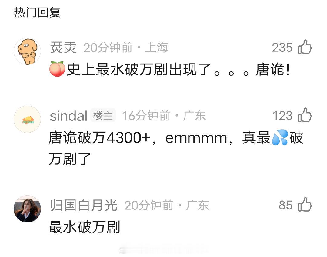 唐诡3破万,云合只有4300,网友辣评爱奇艺史上最水破万剧出现了。临江仙首次破万云合5289,朝雪录5833, 此身分明了。。。