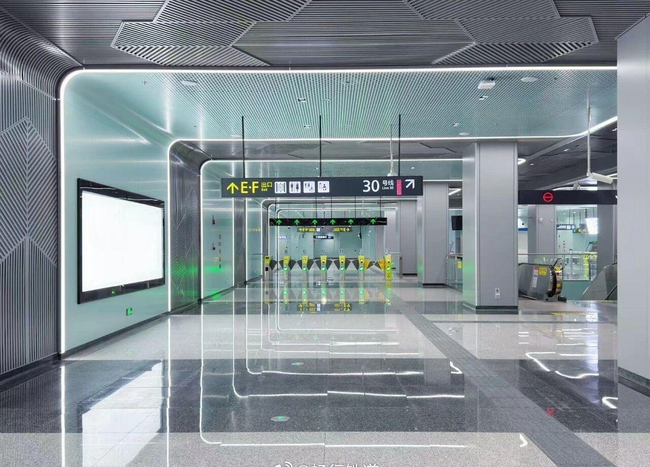 【成都地铁30号线一期即将开通 城南再添“科幻动脉”】 成都地铁30号线车站正式亮相,这条横跨双流区、高新区、锦江区、龙泉驿区四大区域的东西向骨干线路开通在即。它西起双流机场2航站楼东站,东至龙泉驿火车站南站,贯穿城市南部核心地带。 该线路有效填补了7号线与9号线之间约3公里的服务空白,串联起白鹭湾科技生态园、金融城、天府软件园等多个重要产业功能区。全线设6座换乘站,可与2、5、6、8、10、13、19号线等7条既有线路便捷换乘,并连接双流机场与龙泉驿火车站两大交通枢纽。 作为全国首条应用“常规全自动+车车通信”技术的线路,30号线的列车能实现更高效的协同控制和更短的安全行车间隔。车站设计以“科幻创意”为主题,如金融城北站的“数据洪流”灯光、珠江路站的“穿越之门”,为乘客营造沉浸式的未来感通勤体验。