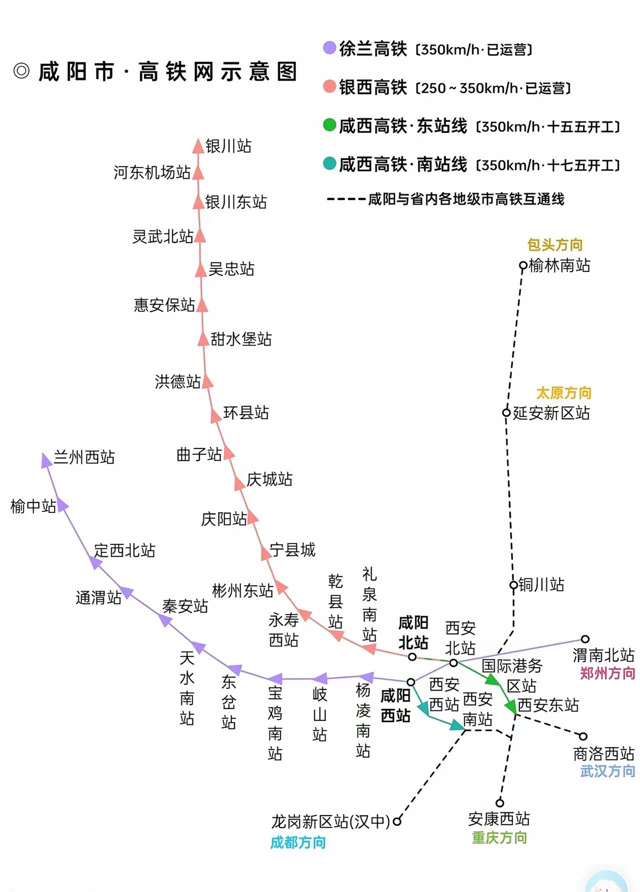 咸阳高铁规划 咸阳市境内设有多个高铁站,包括‌咸阳西站‌(徐兰高铁)、‌咸阳北