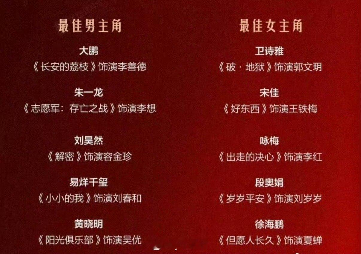 女主压宋佳,男主?刘昊然第一次提名吧,老四这次很想要