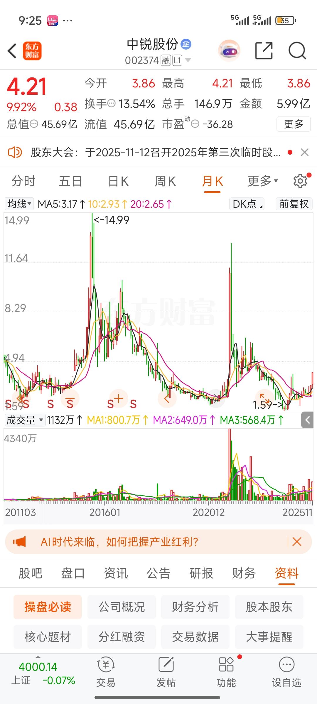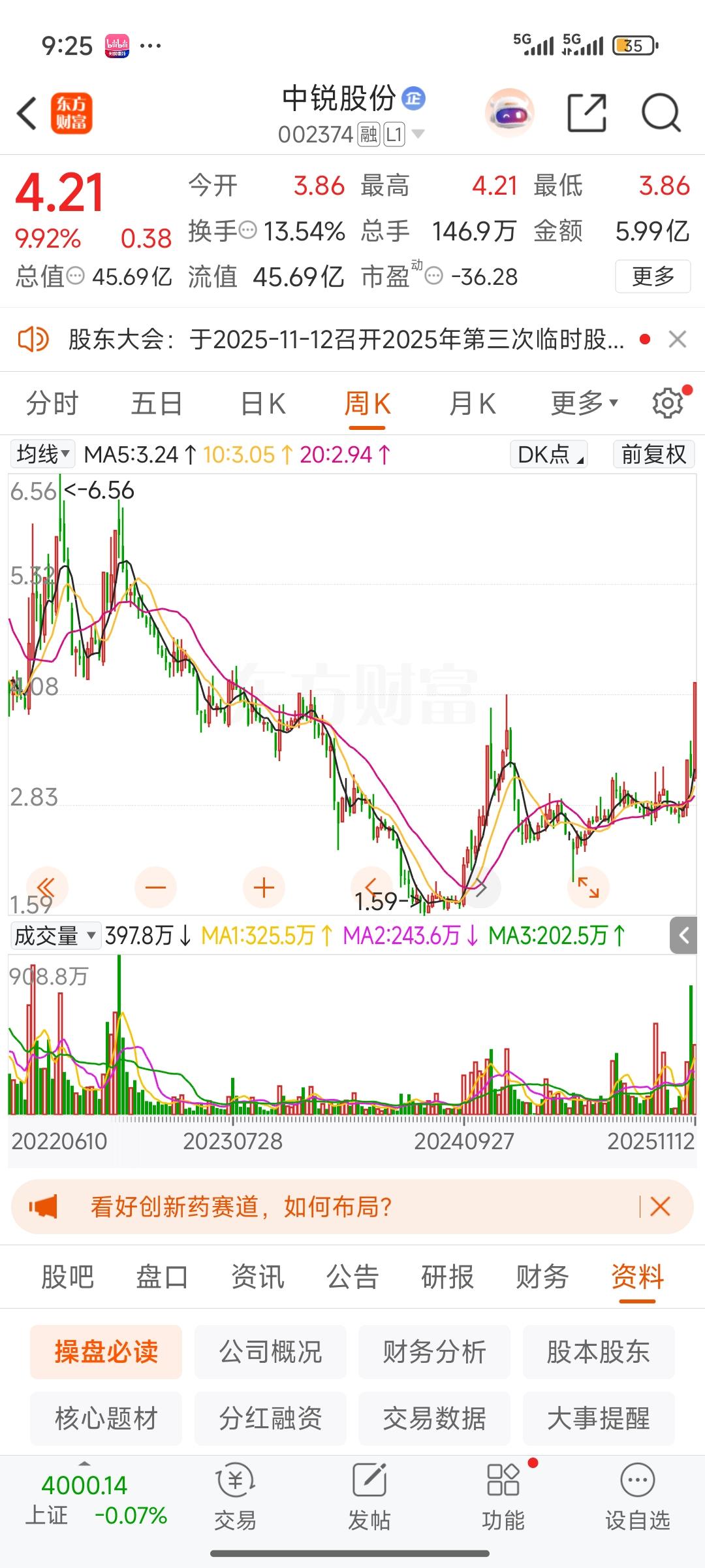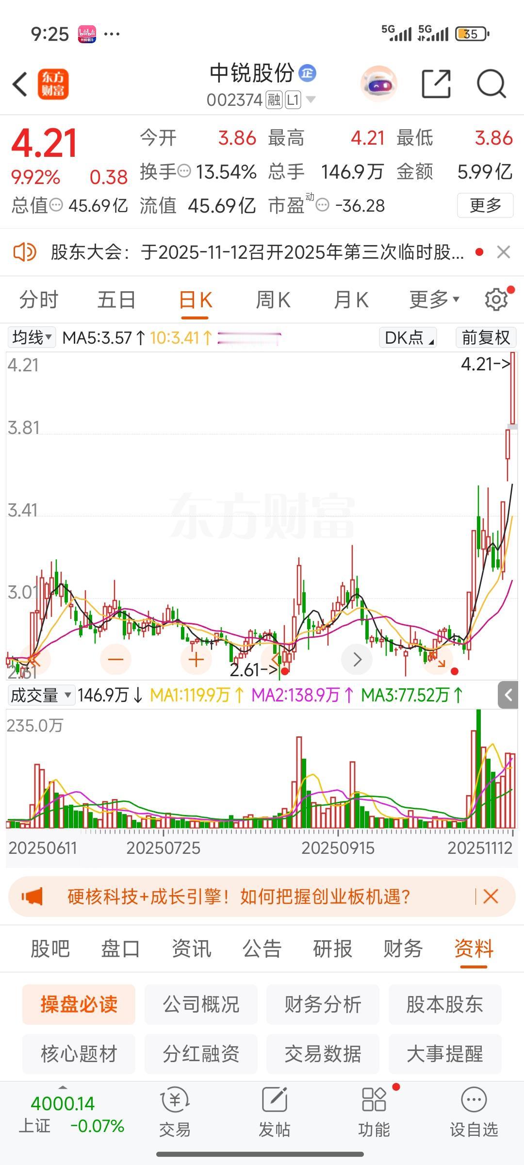 中锐股份这只股票,我曾一度颇为看好,一直处于观望状态而未入场。眼睁睁看着它调整之后,接连收获三个涨停板,我唯有感叹不够果断,与它缘分不足。只能期待下次再相逢了。