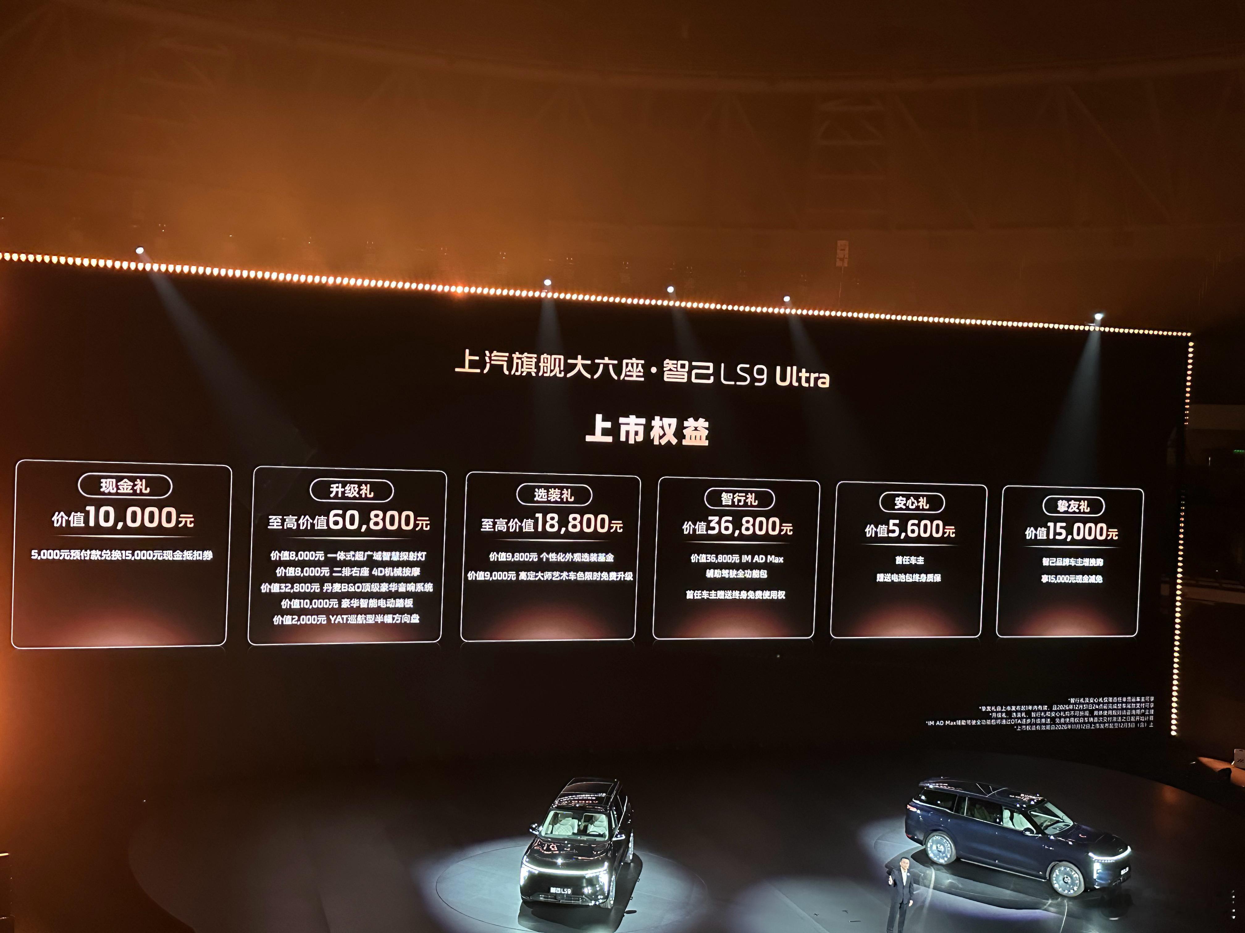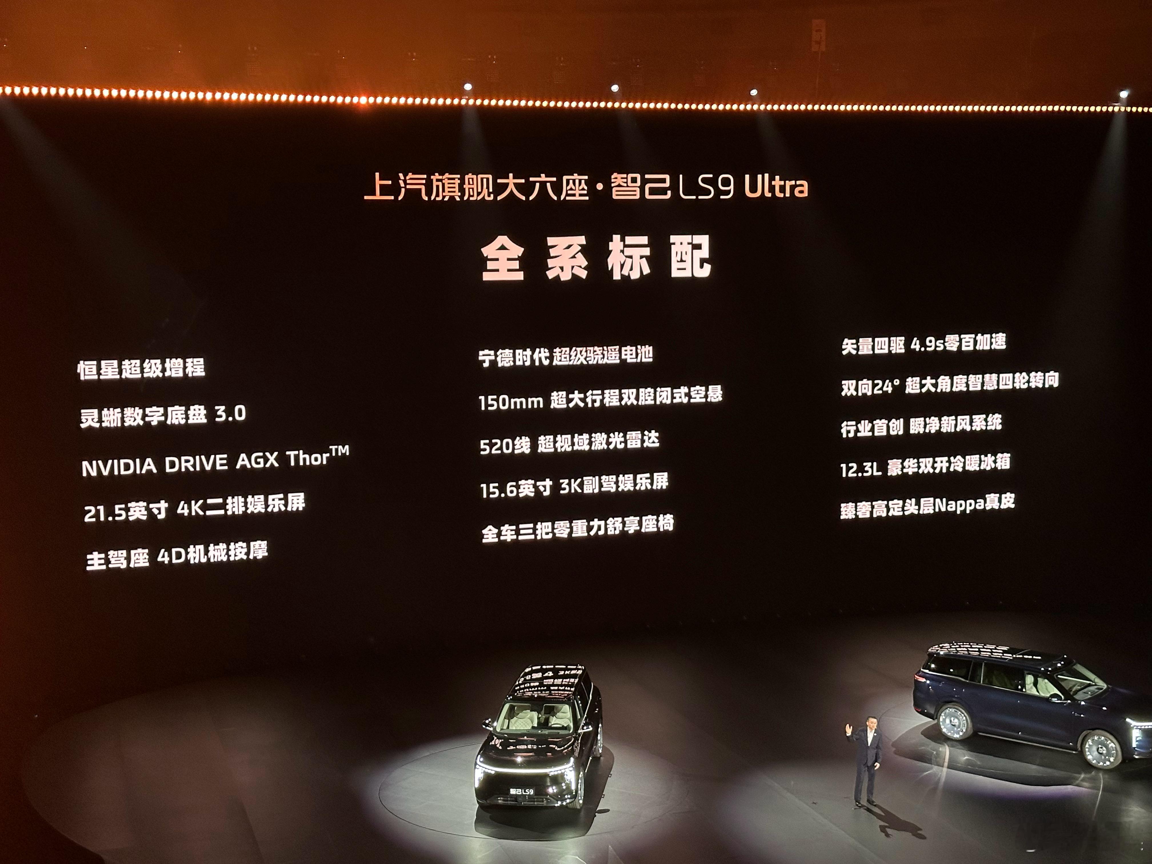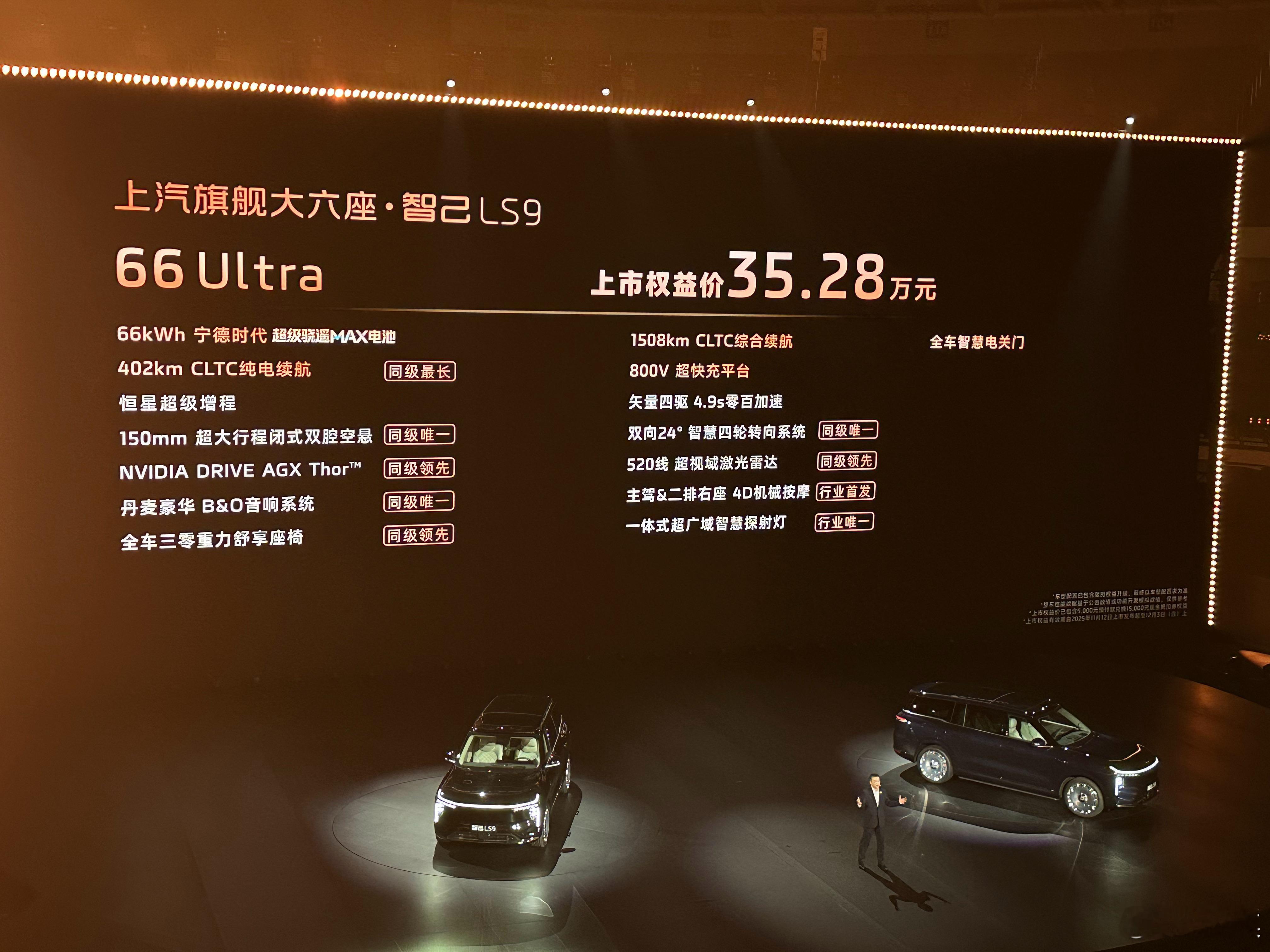 智己LS9上市,52Ultra版32.28万,66Ultra版35.28万,9系旗舰又来一个强有力的竞争对手全系标配宁德时代骁遥电池、激光雷达、12.3升冷暖冰箱、零重力座椅、二排娱乐屏、灵蜥数字底盘……动力方面,有52kWh、66kWh两种电池可选,CLTC纯电续航里程最高可达402km,综合续航里程最高1508km。