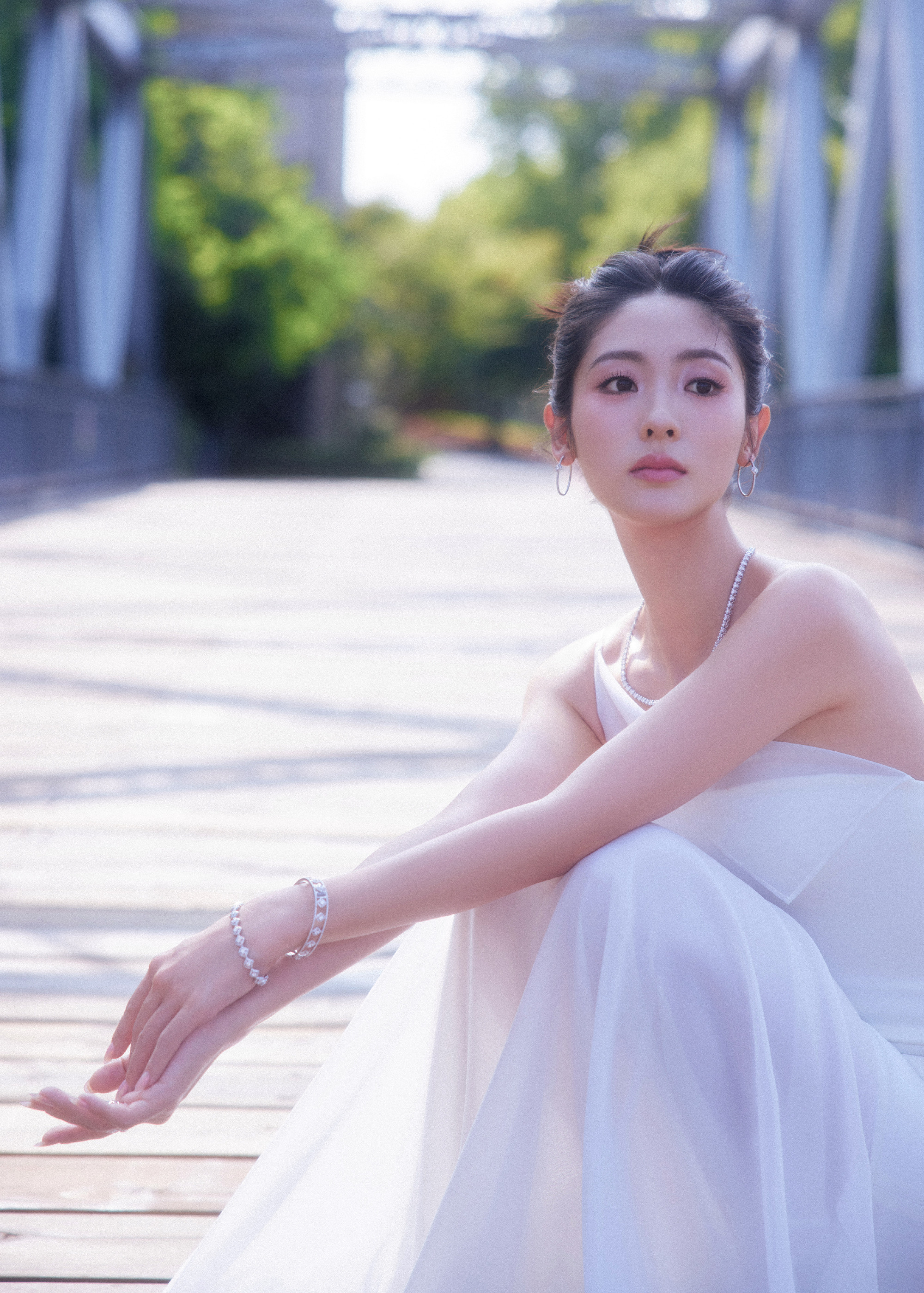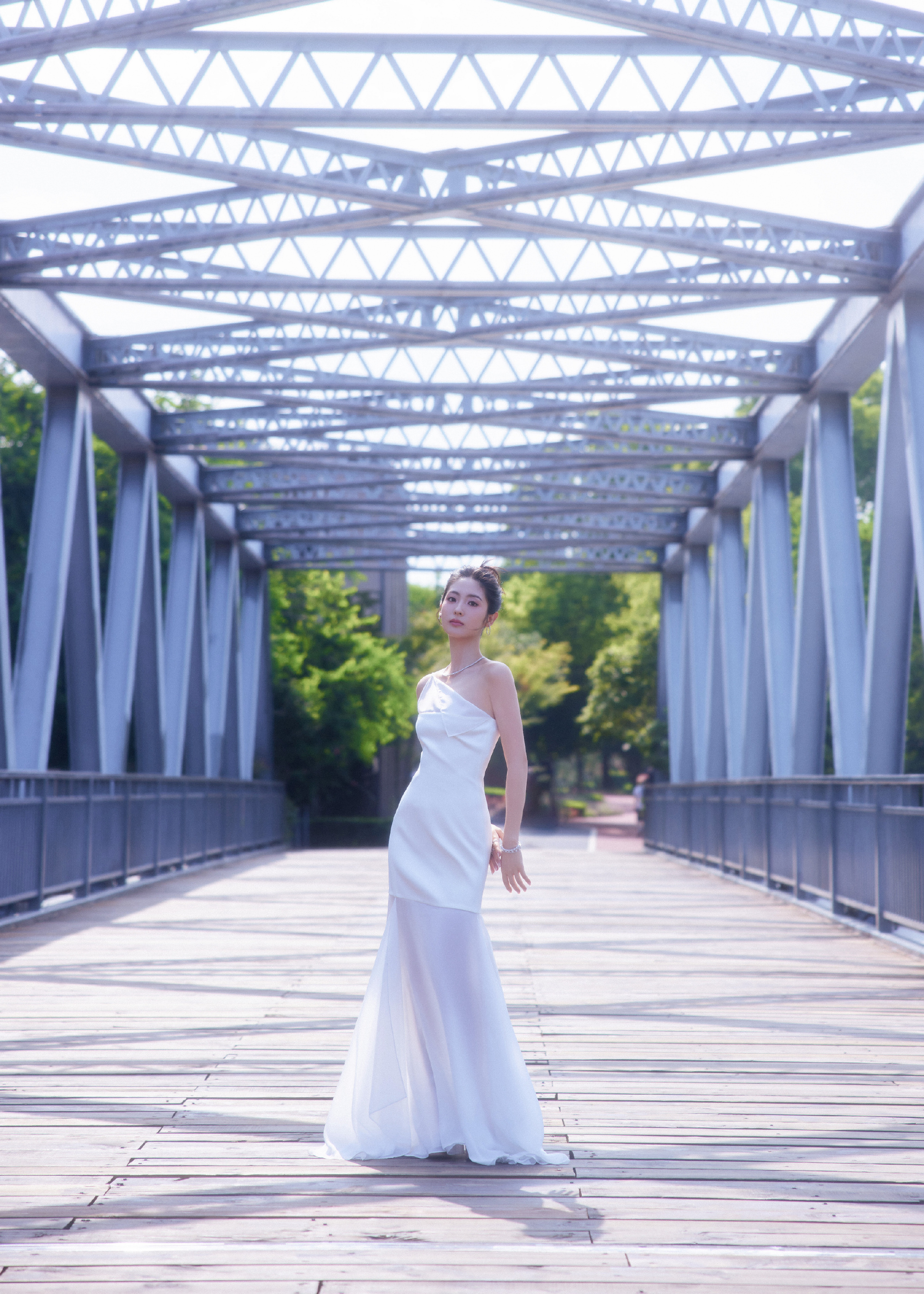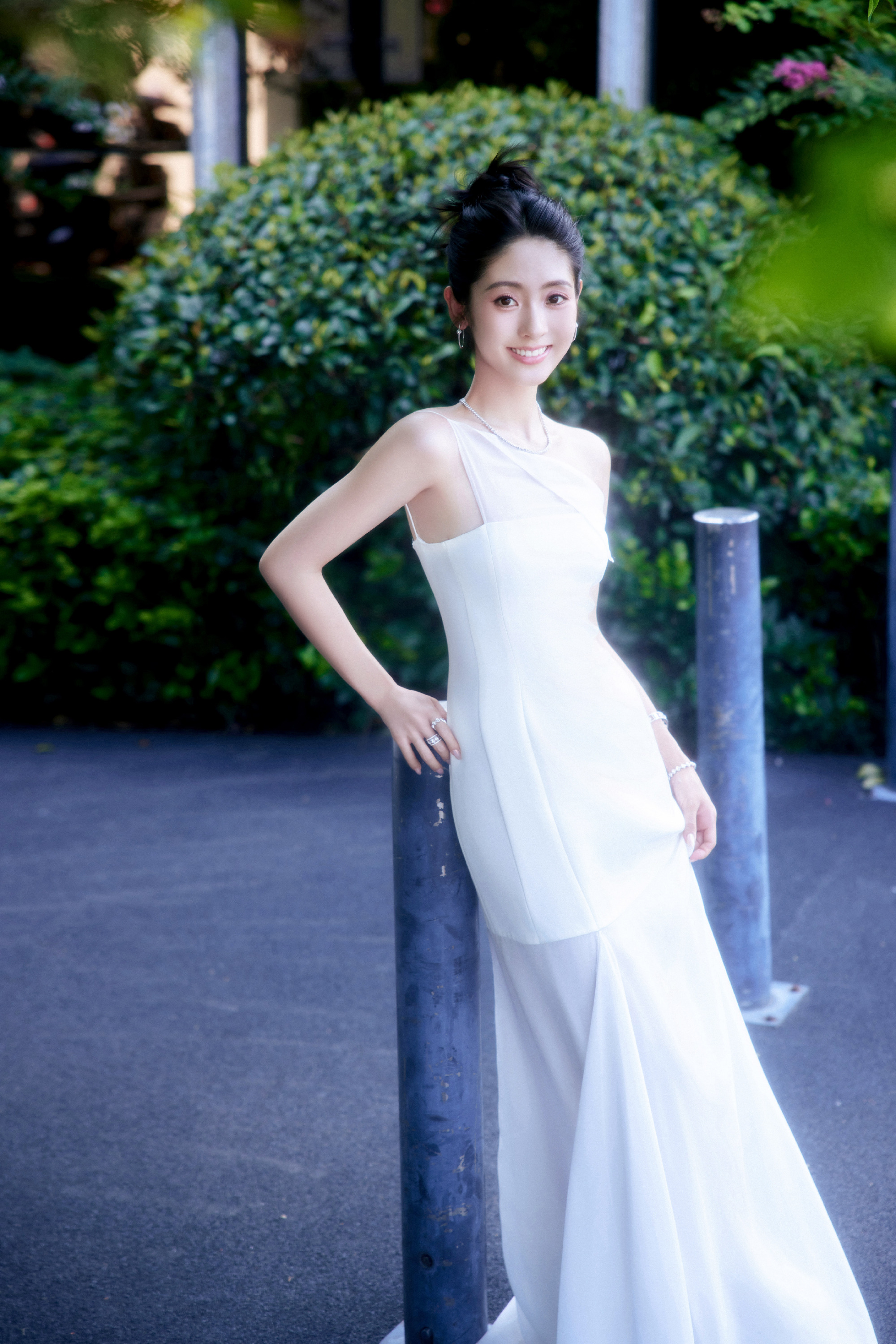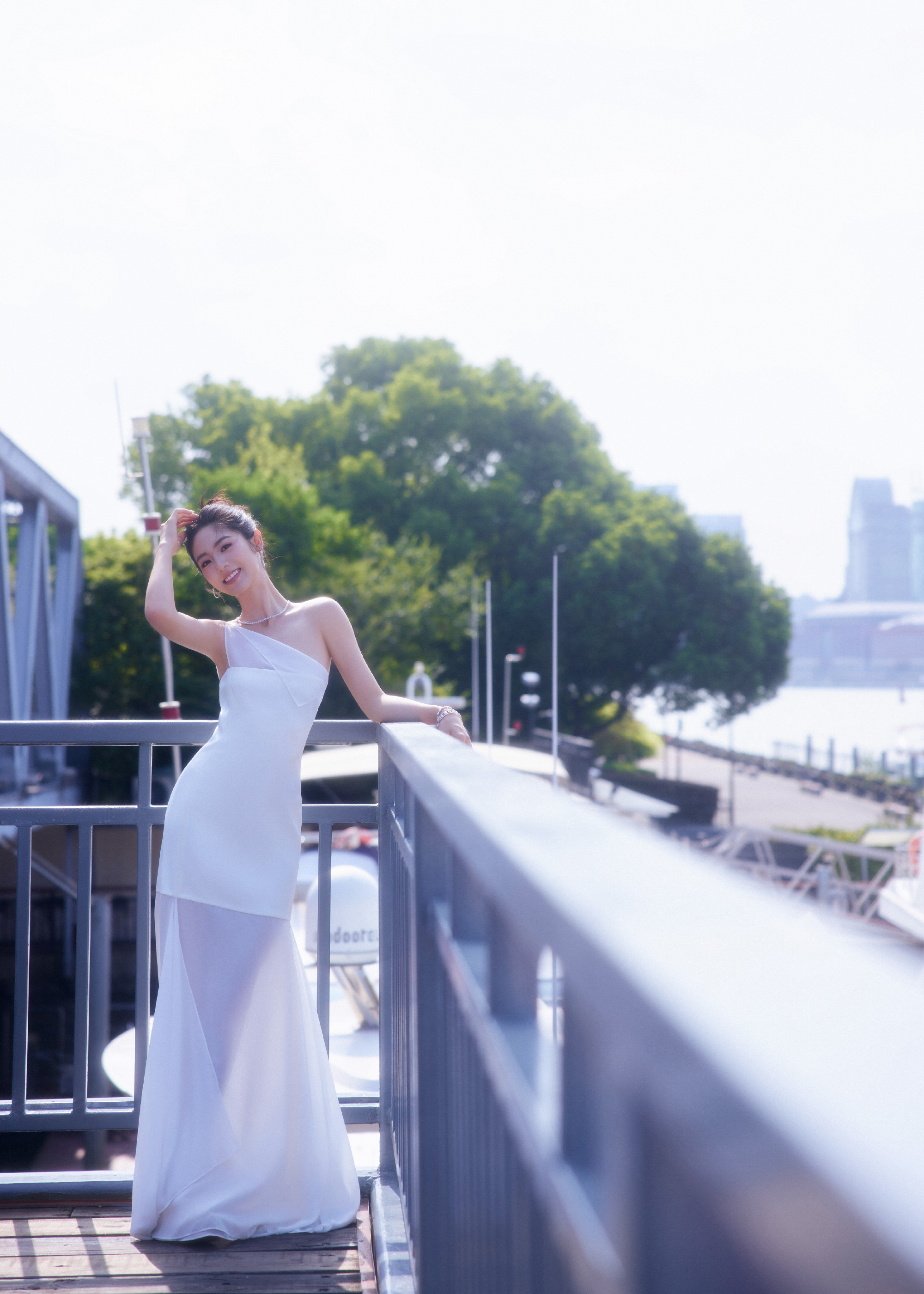 邢菲,一身白色抹胸裙,静谧之秋格调流转