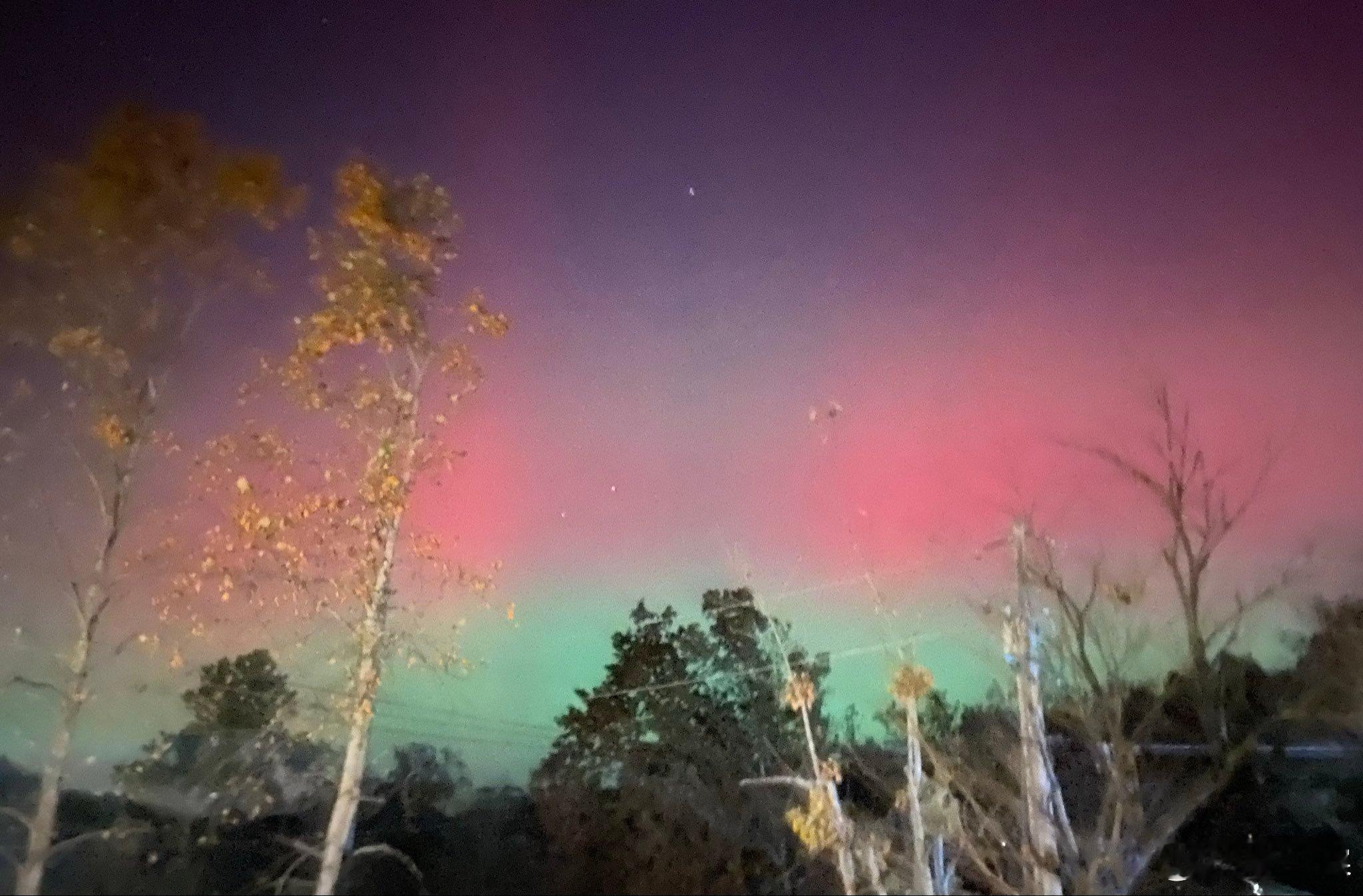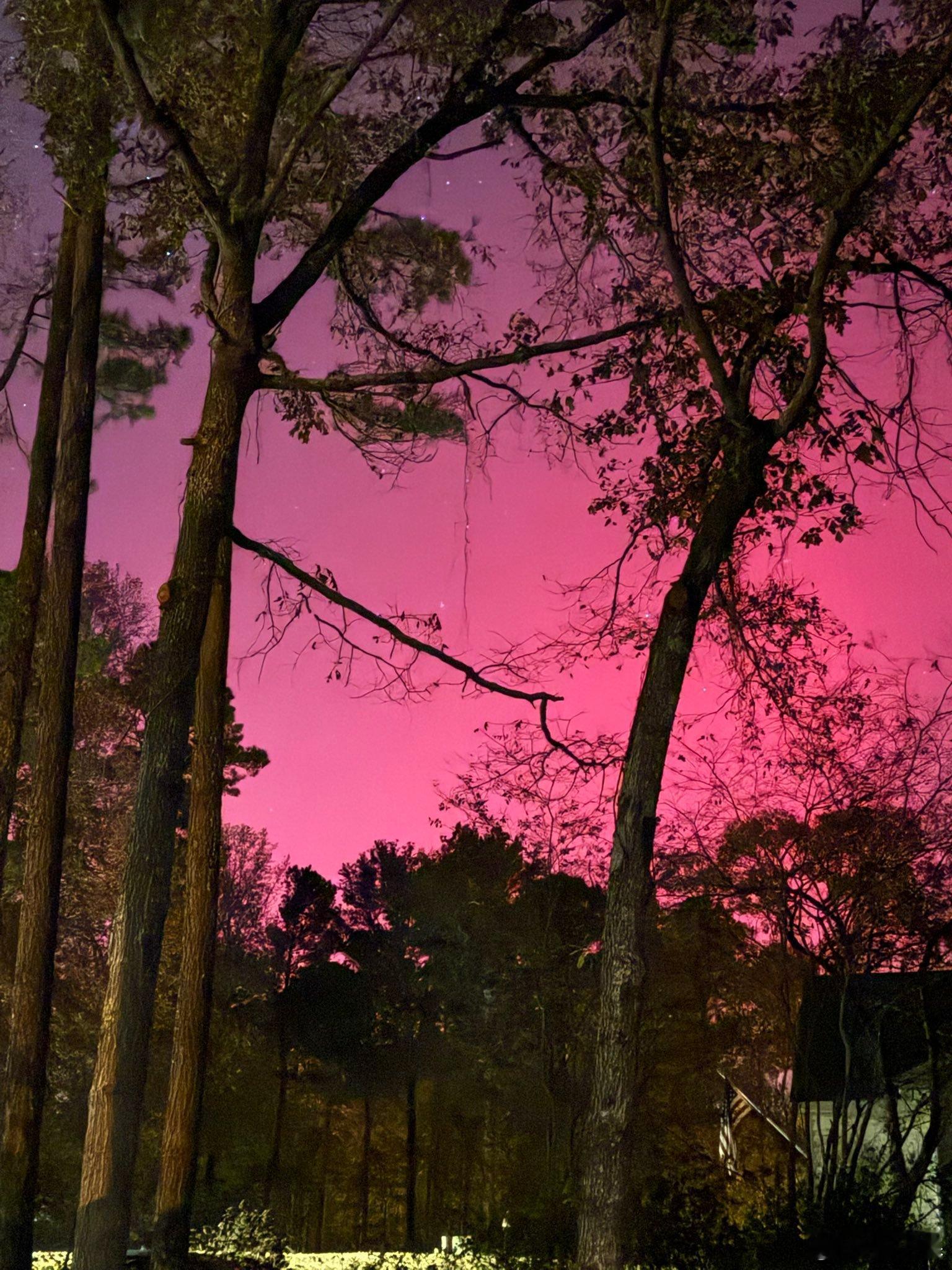 实时,美国网友拍摄的极光照片!有粉色红色!