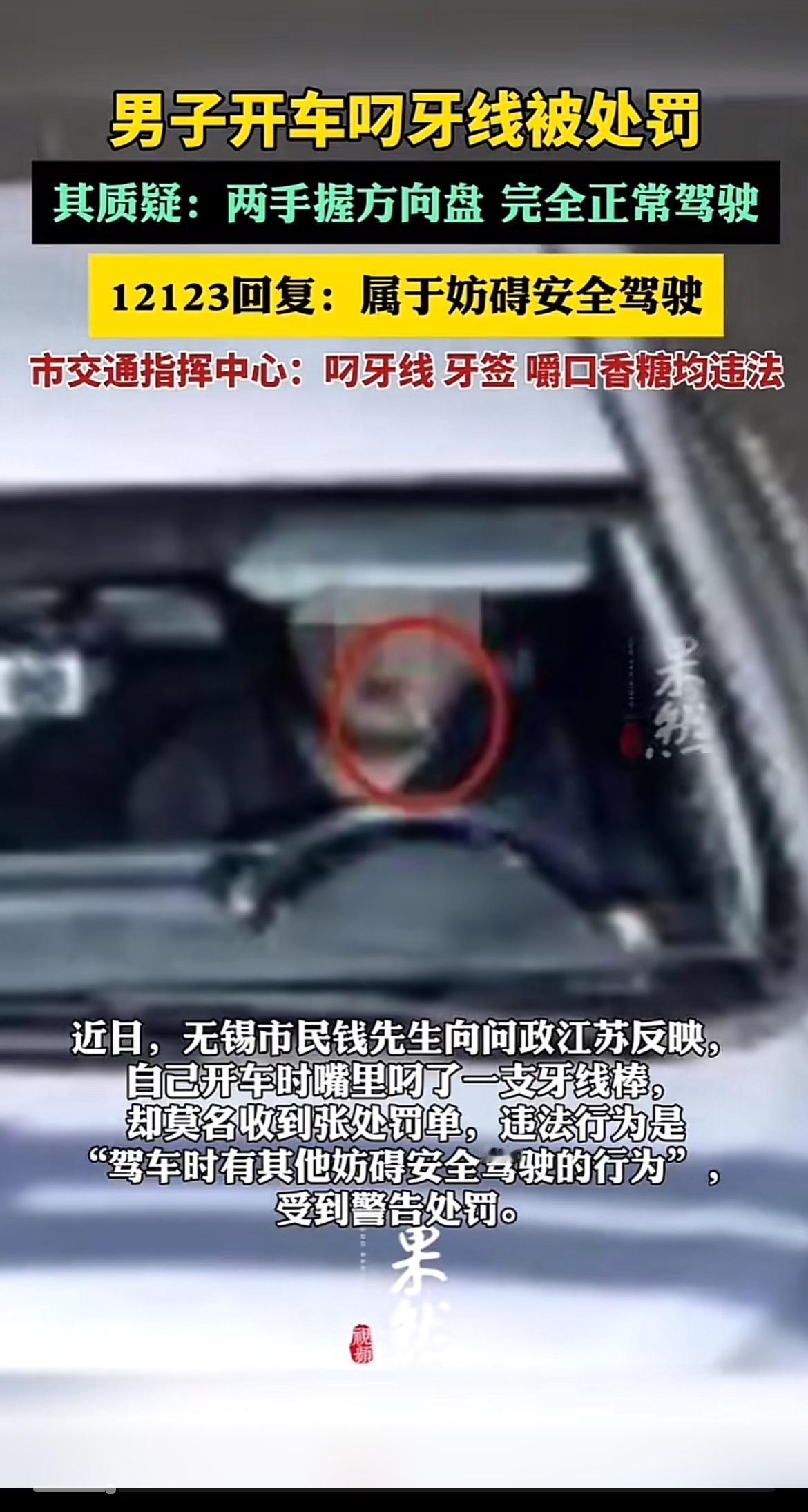 江苏无锡一男子开车时叼牙线棒被警告处罚,这事可太有争议了。男子觉得自己全程双手握