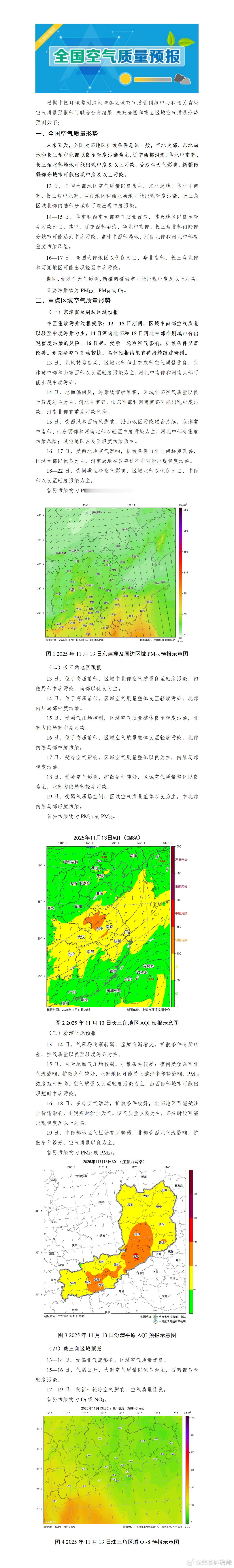 全国空气质量预报未来五天,全国大部地区扩散条件总体一般,华北大部、东北局地和长三角中北部以良至轻度污染为主,辽宁西部沿海、华北中南部、长三角北部局地可能出现中度及以上污染。受沙尘天气影响,新疆南疆部分城市可能出现中度及以上污染。