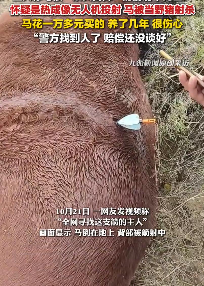 养殖场里的马,都在欢快地奔跑嘶鸣,场主忽见一匹马倒卧在地,大吃一惊! 前不久,山西吕梁一养殖场负责人田先生反映:他饲养的一匹马,无故遭人用无人机猎杀。 当地警方已经介入调查,肇事人员至今未赔偿。 马的主人表示:事发地在吕梁临县玉坪山乡刘家庄村,后面的沟里面。正在山坡上吃草的马,可能是被人当做野猪射杀的。 主人介绍,马是花一万多元钱买的,自己已经养了几年了。无故的遭人射杀,很伤心! “警方已经找到肇事者了,但是,赔偿问题还没有谈好……”