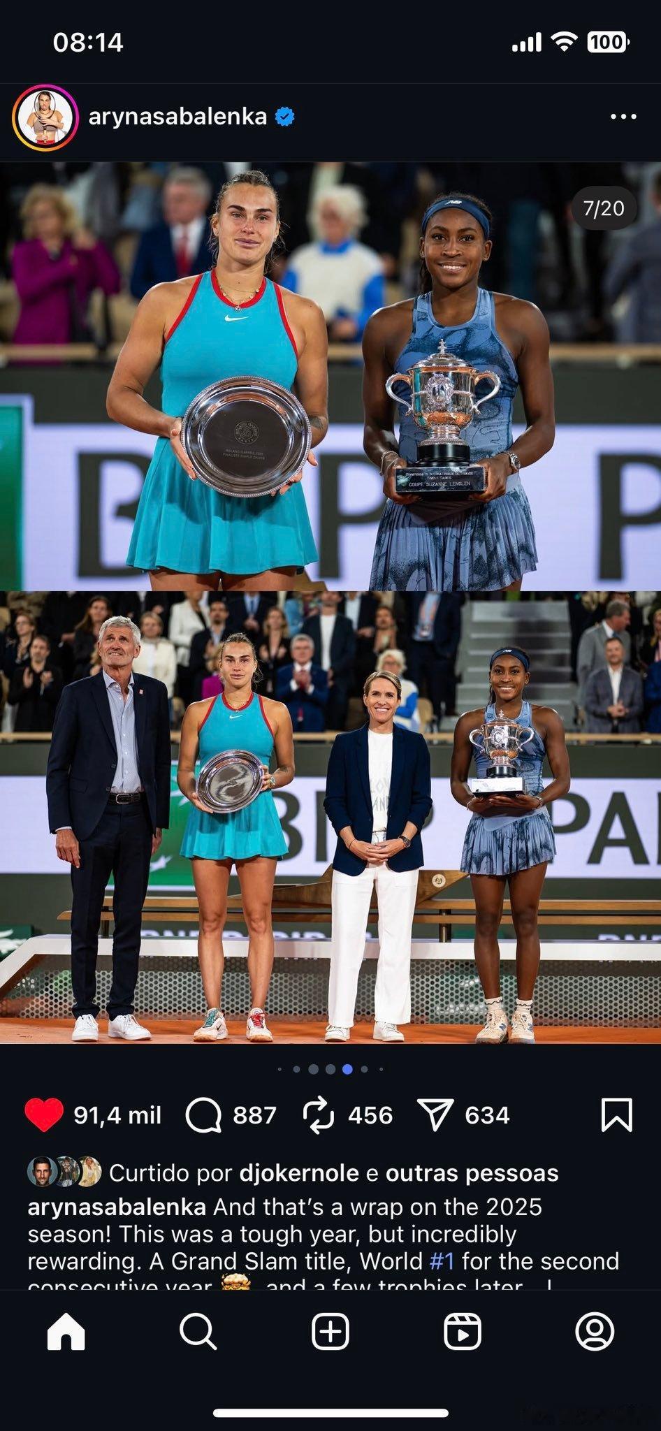 萨巴伦卡今年三个大赛亚军,哪个最可惜?A、澳网亚军B、法网亚军C、总决赛亚军