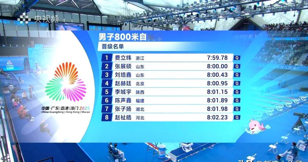 张展硕的后50米真是太可怕了。 男子800米自由泳预赛,750米转身处,张展硕甩开刘培鑫半个身位,这种后程加速能力真是让人惊叹。 小组第一,总成绩第二进入决赛。 800米自由泳冠军很有可能还是张展硕的! 听了400米冠军后他说的那些话,我认定这小子必成大器,孙杨的接班人有了! 年轻就是体力好。最后一个转身在水里一下子就把距离拉开了 我敢说,这小伙子本届运动会最少拿3块金牌,400米、800米、1500米,成为第二个孙杨没问题!