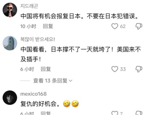 韩国网友评论高市对华宣战的言论 日本如果与中国发生战争,韩国可以趁机扩大领土占领日本 日本撑不了一天就垮了,美国来不及插手 两颗原子弹是不够的,日本需要更多…… 首先,韩国社会内部对日本的情感确实复杂。2019年东京奥运会期间,韩国代表团因为挂出与朝鲜半岛历史上抗倭英雄李舜臣语录相似的横幅,就引发日方强烈抗议,这事儿就能看出历史记忆的深刻影响。但这种历史情绪,离转化为实际的军事扩张行动,还差着十万八千里。 更关键的是现实利益。中韩贸易额连续多年突破2万亿元人民币,中国是韩国最大的贸易伙伴,这经济纽带可不是一般的结实。韩国国内一些理性声音,比如《韩民族日报》就曾刊文指出,在世界局势愈发混乱的背景下,韩国更应将中国视为合作伙伴,而非排斥对象。 为了一个几乎不可能实现的“占领日本”的幻想,去破坏对华经济关系,对韩国来说绝对是笔血亏的买卖。韩国政府层面,像文在寅总统过去在谈及韩中关系时也强调,需要深化经贸合作并努力使两国国民从中获益。 再说说军事层面。韩国的国防力量确实不弱,但其战略关注点首要的是朝鲜半岛的防卫,以及应对朝鲜的军事威胁。它的军队结构、装备配置、训练重点,基本都是围绕这个核心任务来建设的。让韩国去跨海攻击一个拥有相当军事实力的日本,这本身就需要巨大的军事转型和资源投入,绝非易事。 而且,日本自身的防御能力也不容小觑。日本拥有先进的海上自卫队和空中力量。韩国网友所说的“日本撑不了一天”,这纯粹是对现代战争复杂性的严重低估。任何大规模军事冲突都不可能在一两天内定胜负,尤其是涉及两个现代化国家之间。 国际社会也不可能允许这种领土扩张行为发生。联合国宪章等一系列国际法规都明确禁止侵略和武力兼并他国领土。韩国如果真这么干,瞬间就会在国际上陷入极端孤立的境地,面临难以承受的政治、经济制裁和道义压力。韩国是个高度依赖国际贸易的国家,这种孤立是其无法承受的。 更重要的是,日韩都是美国的军事盟友,美日韩三角同盟是美国在东北亚战略布局的基石。美国在韩国和日本都有大量驻军。美国的核心目标之一是维护盟友间的稳定与合作,从而服务于其更大的地区战略。 如果韩国试图攻击日本,这将直接冲击美国的核心利益,美国必然会进行强力干预和调停,绝不会坐视自己的两个盟友火并,导致其战略布局崩溃。历史上看,美国也十分重视韩国的战略地位,并将其视为整体联盟体系中的重要一环。 那么,为什么韩国网友中会出现这种看似“疯狂”的言论呢?这很大程度上反映了网络空间的一些特性。网络的匿名性和群体效应,容易放大极端民族主义情绪。一些极端言论更容易博取眼球,获得传播,但这往往不能代表主流民意。 就像此前有报道提到,韩国一些极右翼团体和媒体也曾大肆炒作反华议题,煽动民族主义情绪,但这并不代表所有韩国人都持这种观点。 实际上,韩国国内对此也有反思声音。例如,有韩国学者就指出,韩国国内反华情绪上升令人痛心,并认为目前出现的过激行为仍集中于少数极端人群中。同样,对于极端对日言论,韩国社会内部也存在不同的声音和制约因素。 从地缘政治现实来看,韩国的最佳选择是保持战略平衡与稳定。韩国需要在中美之间,以及在复杂的地区环境中寻求一种平衡。历史上,韩国也曾通过务实合作化解危机,例如“萨德”事件后,韩国政府通过“三不”承诺推动中韩关系回暖。这表明韩国外交实践中存在务实传统。 对于韩国来说,更理性的路径是加强与包括中国在内的邻国的沟通与合作,同时妥善处理与日本的历史遗留问题,并在美日韩同盟框架内协调立场。这符合其国家发展的长远利益。像“趁机占领日本”这种言论,不仅不现实,而且会严重损害韩国自身的国际形象和发展环境。 所以,下次再看到韩国网友这种“日本需要更多原子弹”或者“韩国应趁机占领日本”之类的激烈评论,基本可以判断那是网络空间里极端情绪放大后的噪音,离现实的政治和军事决策层面非常遥远。 现实中的国际关系、地缘政治、经济相互依存和军事同盟体系,共同构成了一道坚固的“防火墙”,使得这种激进的领土扩张想法几乎没有实现的可能。韩国的主流社会和政治精英阶层对此有着清醒的认识,国家的实际政策走向也必然是立足于现实利益和区域稳定的考量。