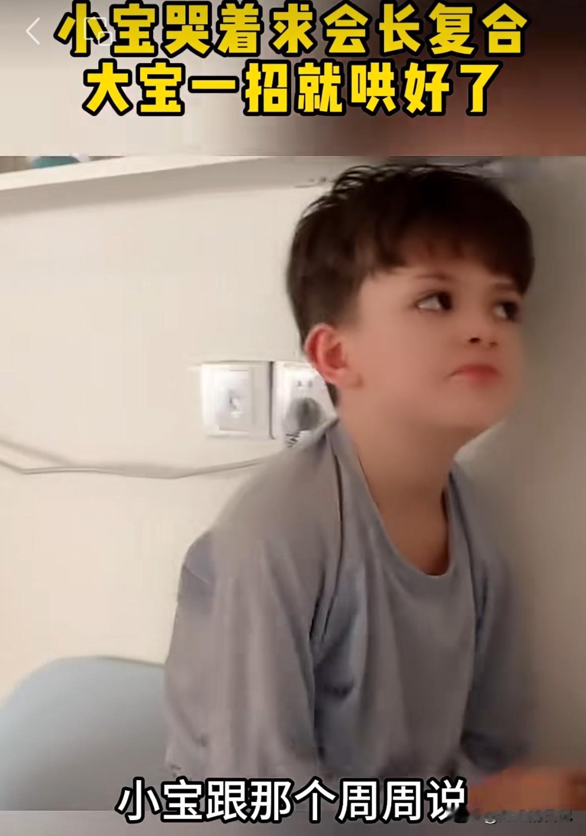 小宝眼里没有光了! 于文红现在每天心情好的不行,跟小男友在一起,谈恋爱,跟个娇羞的小女生一样,但是她的小儿子很可怜,眼睛里已经没有光了。 小宝很成熟,他一定非常难受,他也感觉到很多东西在失去。 一,爸爸去北京工作,没在他身边, 二,妈妈在工作谈恋爱,没时间陪他 三,他自己在寄宿学校 四,他明显能感觉到爱在消失。 所以他哭着求周周帮帮他, 估计他是看到妈妈跟新男友在一起,对他的关注也少了,他也有了危机感吧。 他跟大宝不一样,大宝是于文红肚子生出来的,就算离婚后,于文红跟大宝也没分开过,小宝就不一样了。 于文红除了给钱,其余的都给补了他。 可怜的孩子,现在特别压抑,没有了之前的活泼机灵劲儿,整天心事重重的, 最直接的表现就是,眼睛里没有光了,更没有了自信。