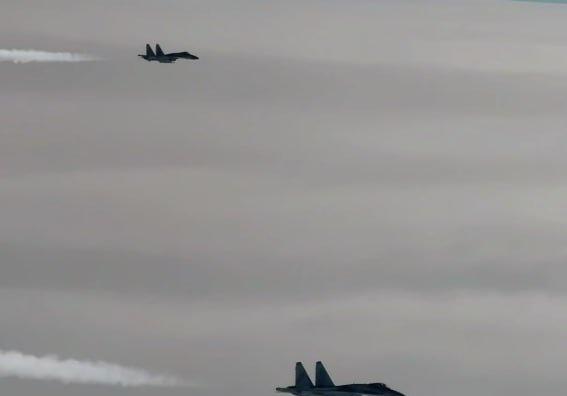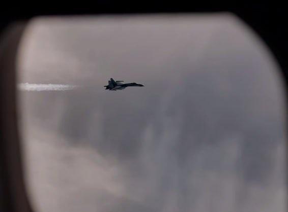 🇷🇺🇰🇿哈萨克斯坦政府报告称,从越过(哈萨克斯坦)国境线到在莫斯科机场降落,哈萨克斯坦总统托卡耶夫的专机在俄罗斯领空由俄罗斯国防部的苏-35战斗机护航。 虽然有两架战斗机,但只详细展示了一架——编号为“59红” RF-44731的专机。战斗机上携带了R-77空对空导弹。