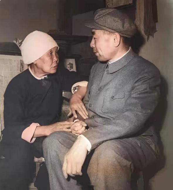 这一幕太亲切了,周总理与乡亲亲切拉家常。周总理接地气,拉家常暖人心,亲切画面感人至深!