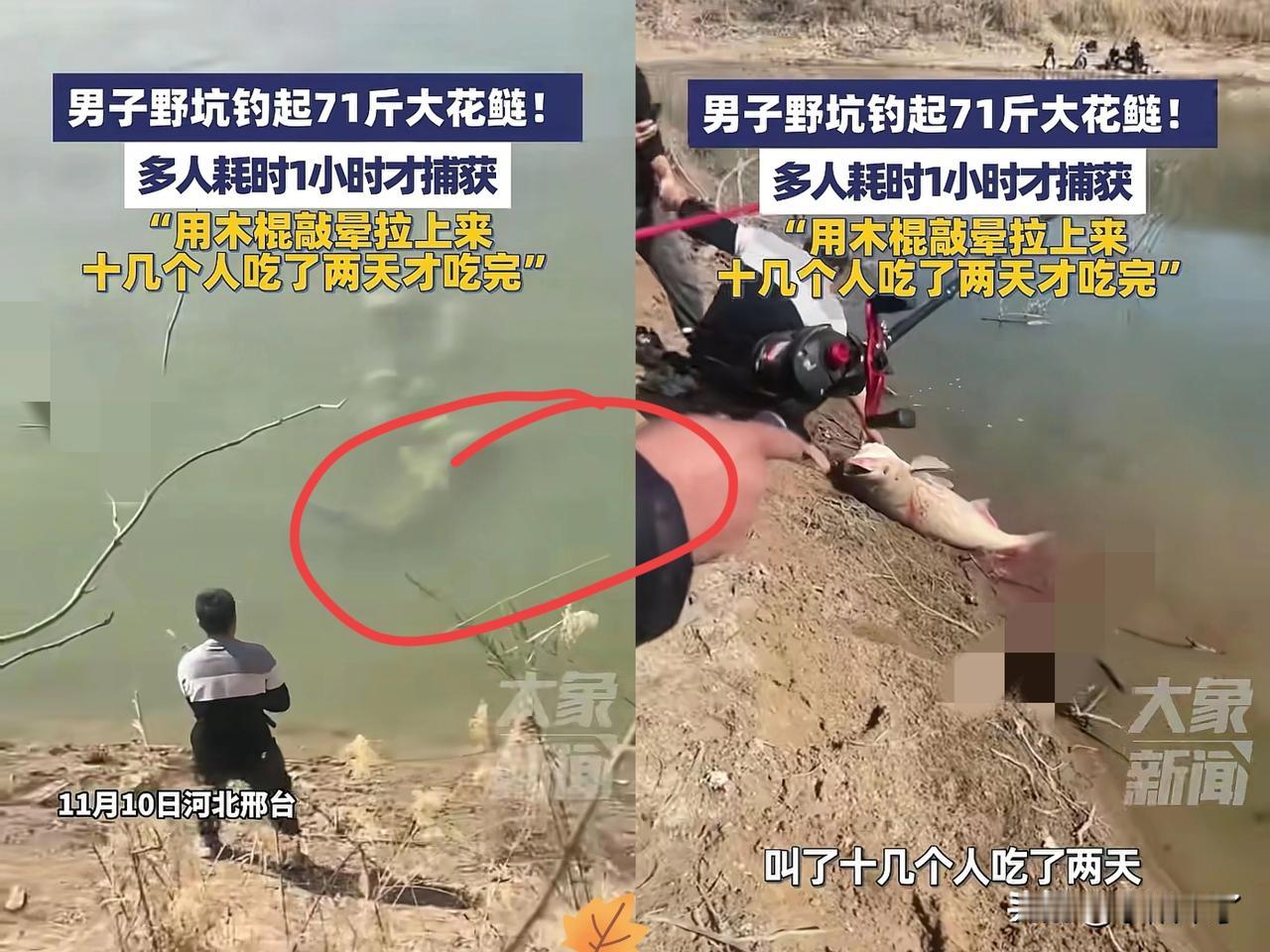 这能吹一辈子!河北邢台,一男子在野坑钓鱼,起竿时以为挂底了,没想到水下传来巨大的拉力,折腾1小时才弄上岸,一称是71斤花鲢! 大哥说鱼是人工野坑钓的,分给亲友吃了两天,可网友们直接炸了锅! 有人眼红这份运气,有人担心野坑鱼受污染不健康,渔政部门更提醒:这么大的鱼大概率是生态关键角色,建议放生! 其实这事的核心,从来不是鱼能不能吃,而是娱乐与生态的边界在哪! 钓鱼图的是解压开心,但遇见罕见巨物,多一份敬畏之心很有必要。不管水域是否人工开挖,保护生物多样性都该是底线! 各位读者你们怎么看?欢迎在评论区讨论!