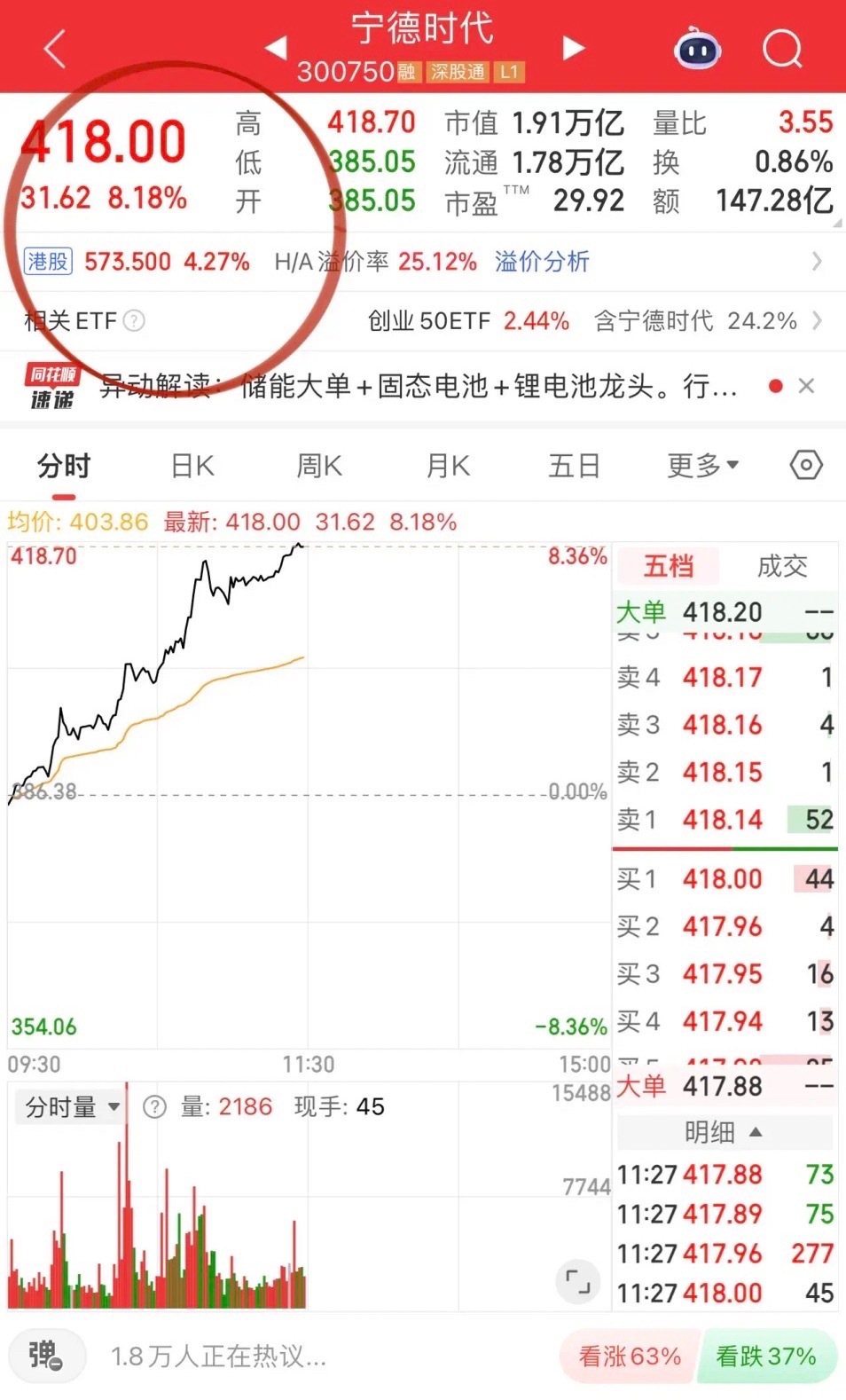 见证奇迹!宁德时代大涨超8%,电池、储能板块超30家涨停。昨天动力电池装机数据公布后,一直引而不发,而且还有光伏利空大跌,结果今天先是储能固态电池领涨,然后带动主流光伏个股反包!今天电池方向个股涨幅低于8%的都拿不出手。上下游一起大涨,强势的一塌糊涂!…