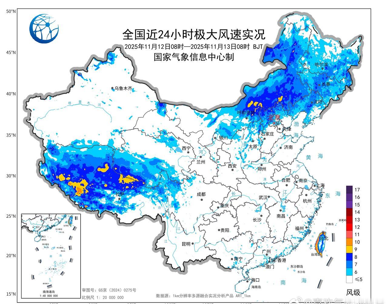 昨天至今晨,青海东部、甘肃南部、黑龙江西北部等地出现小到中雪或雨夹雪;内蒙古中东部、华北北部、东北地区中南部等地部分地区出现6~8级、局地10~11级阵风。