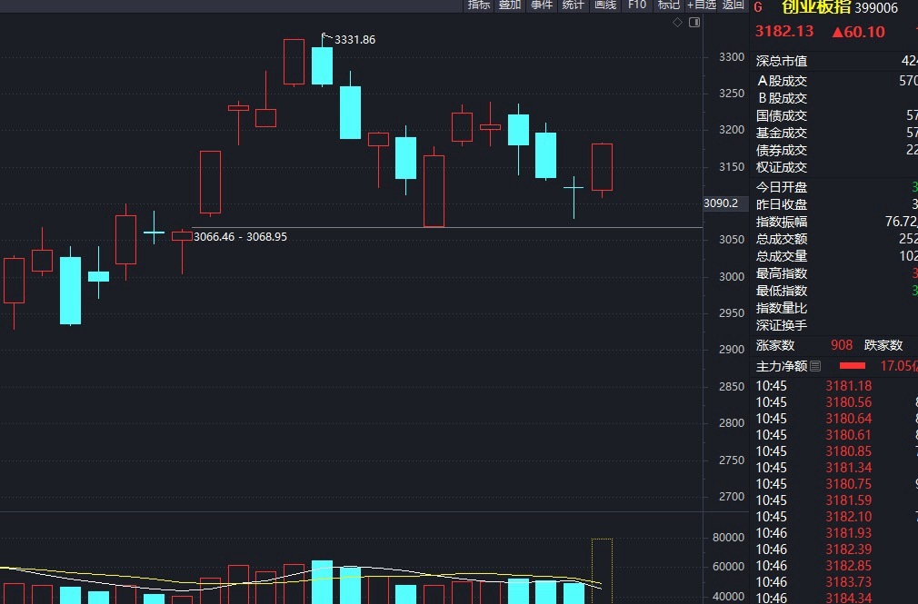 宁德时代大涨8%带动创业板走强,其权重优势抵消AI硬件回调、牵引资金回流。创业板补量站上20日线,若能覆盖前日阴线,短期双底形态将成形,后续反弹动力可期。