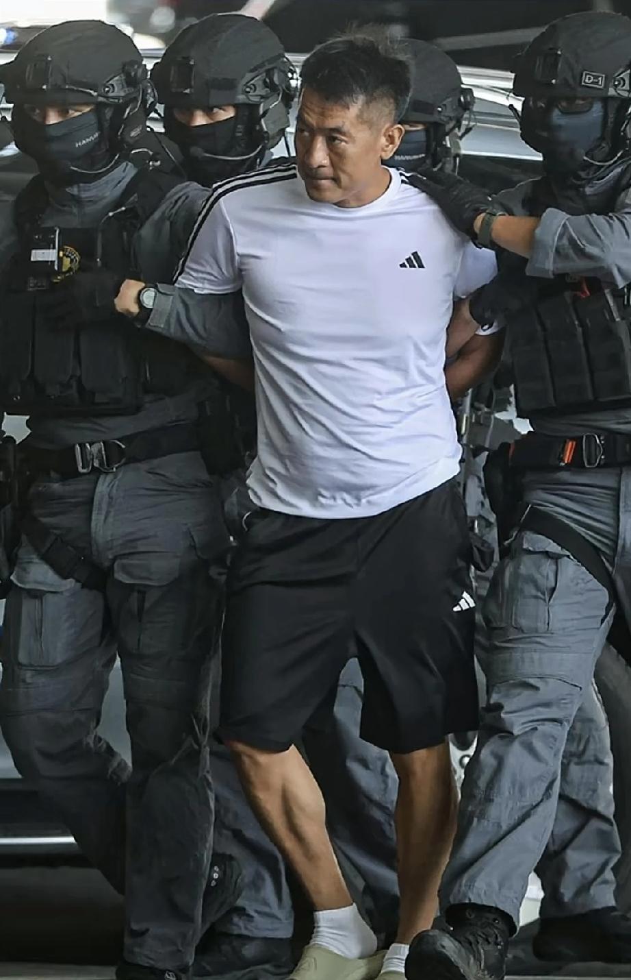 下了飞机腿软了,在泰国3年趾高气昂的,就在去泰国警方押解的时候还一脸得意穿着名牌