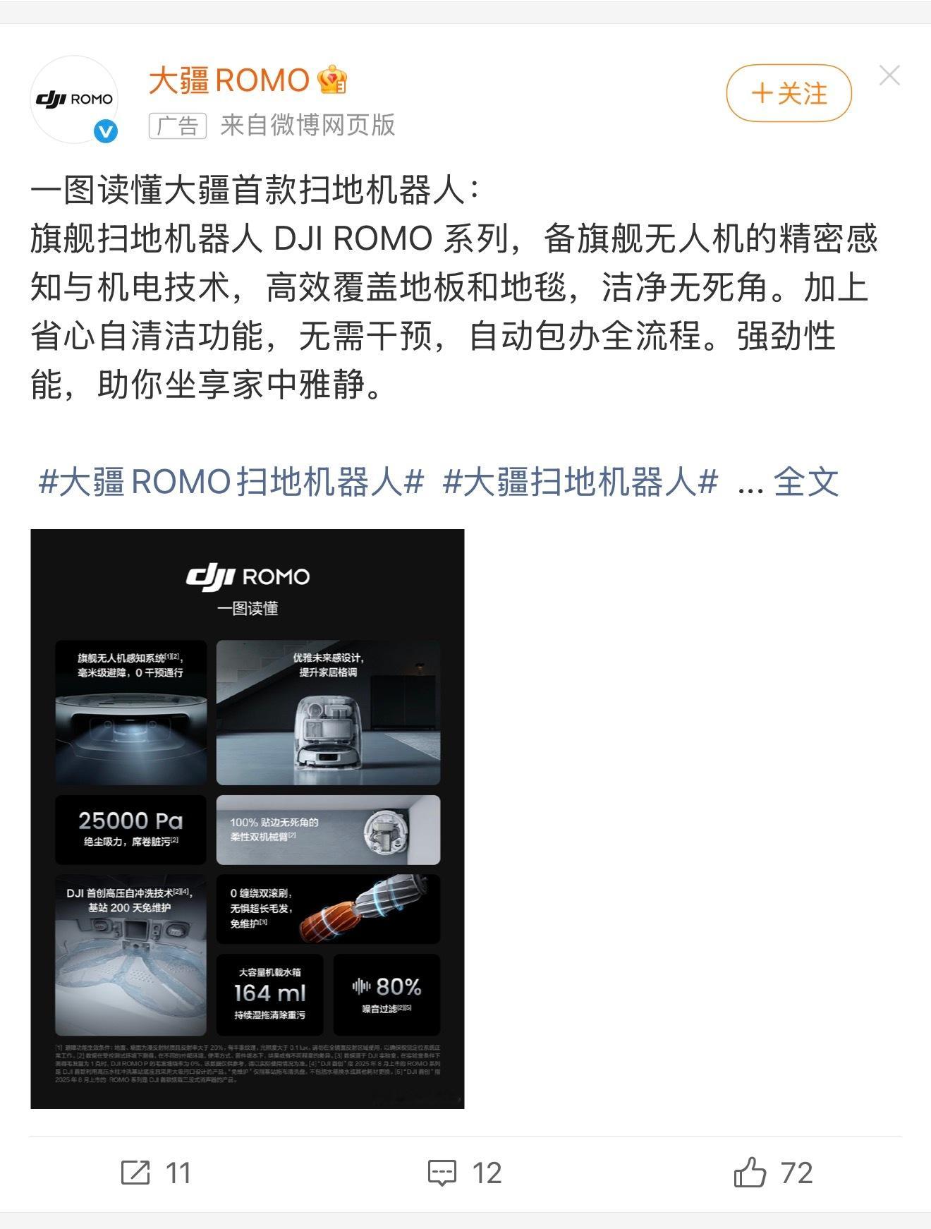 大疆扫地机在微博上的投放有点出乎意料的多这么久了,还没消耗完😂